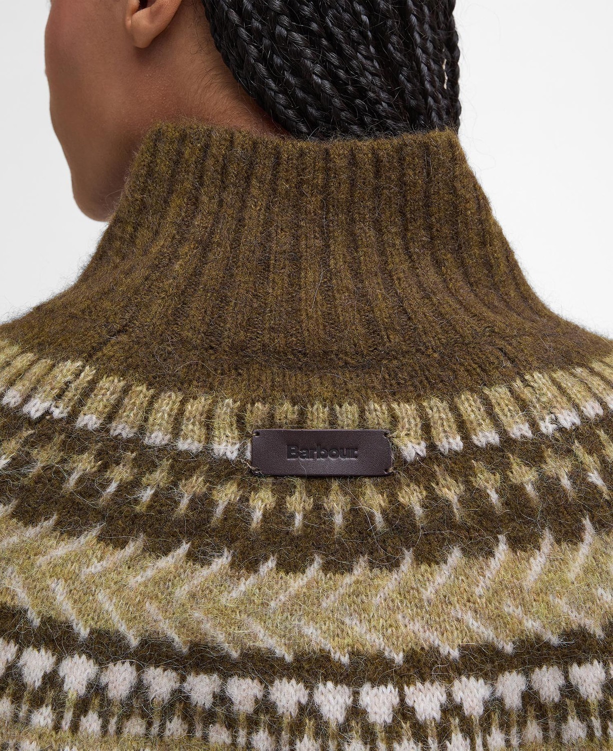 Ощутите уют водолазки Barbour Lorrie с узором фэр-айл. Этот трикотаж из мягкой смесовой альпаки с начесом идеально сочетает в себе тепло и комфорт, нежно окутывая вас прохладным утром. Широкий воротник-труба добавляет нотку изысканности, а кокетка с традиционным узором фэр-айл придает вневременное очарование в современной интерпретации. Прогуливаетесь ли вы по сельской местности или отдыхаете дома, этот джемпер легко сочетает в себе стиль и комфорт.