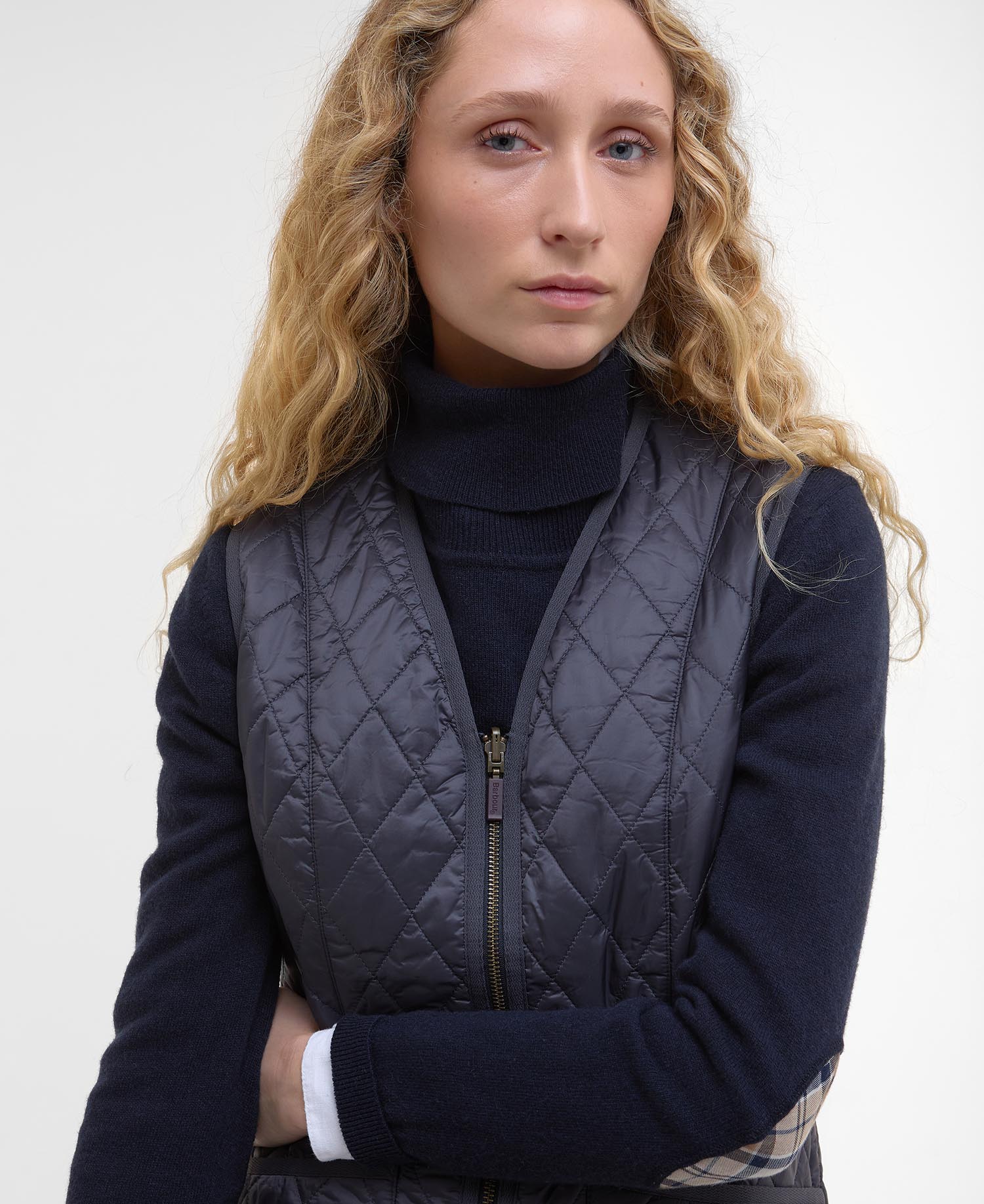 Подкладка Barbour Betty Interactive Liner, которую можно носить отдельно или пристегивать к подходящей куртке Barbour, выполнена из теплого ромбовидного стеганого материала. Она дополнена лаконичным декором: тональная окантовка из репсовой ленты, контрастная вышивка Barbour и глубокие накладные карманы.