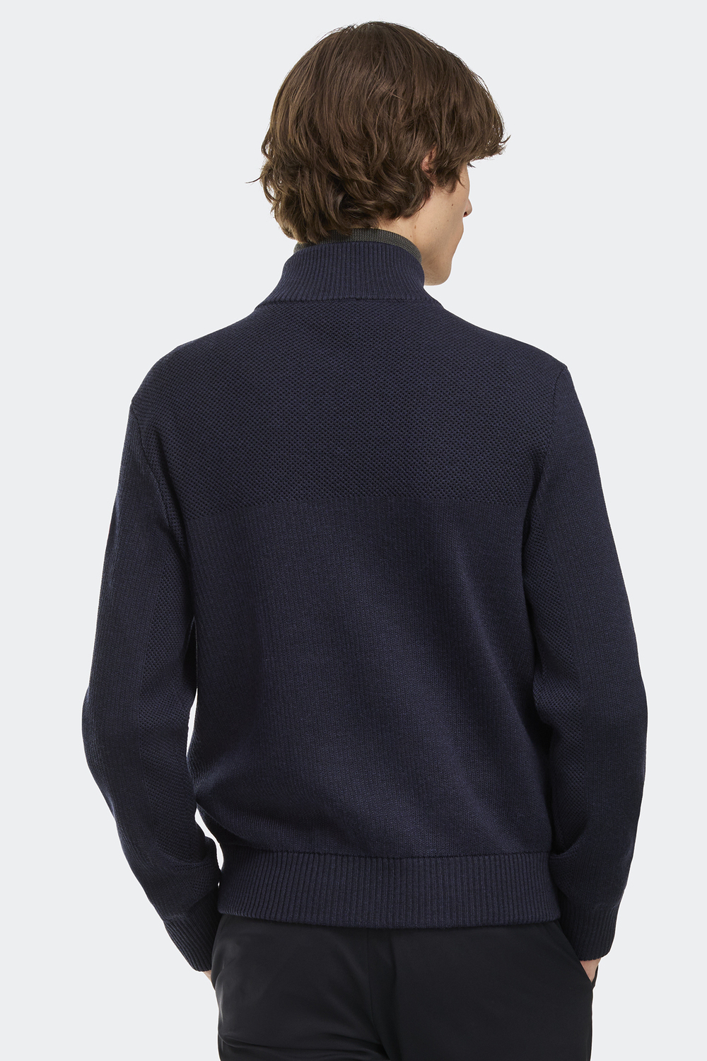 Мериносовая шерсть, дополненная нашим опытом в производстве легкого пуха. Ребристая вязка на манжетах, воротнике и подоле для сохранения формы.