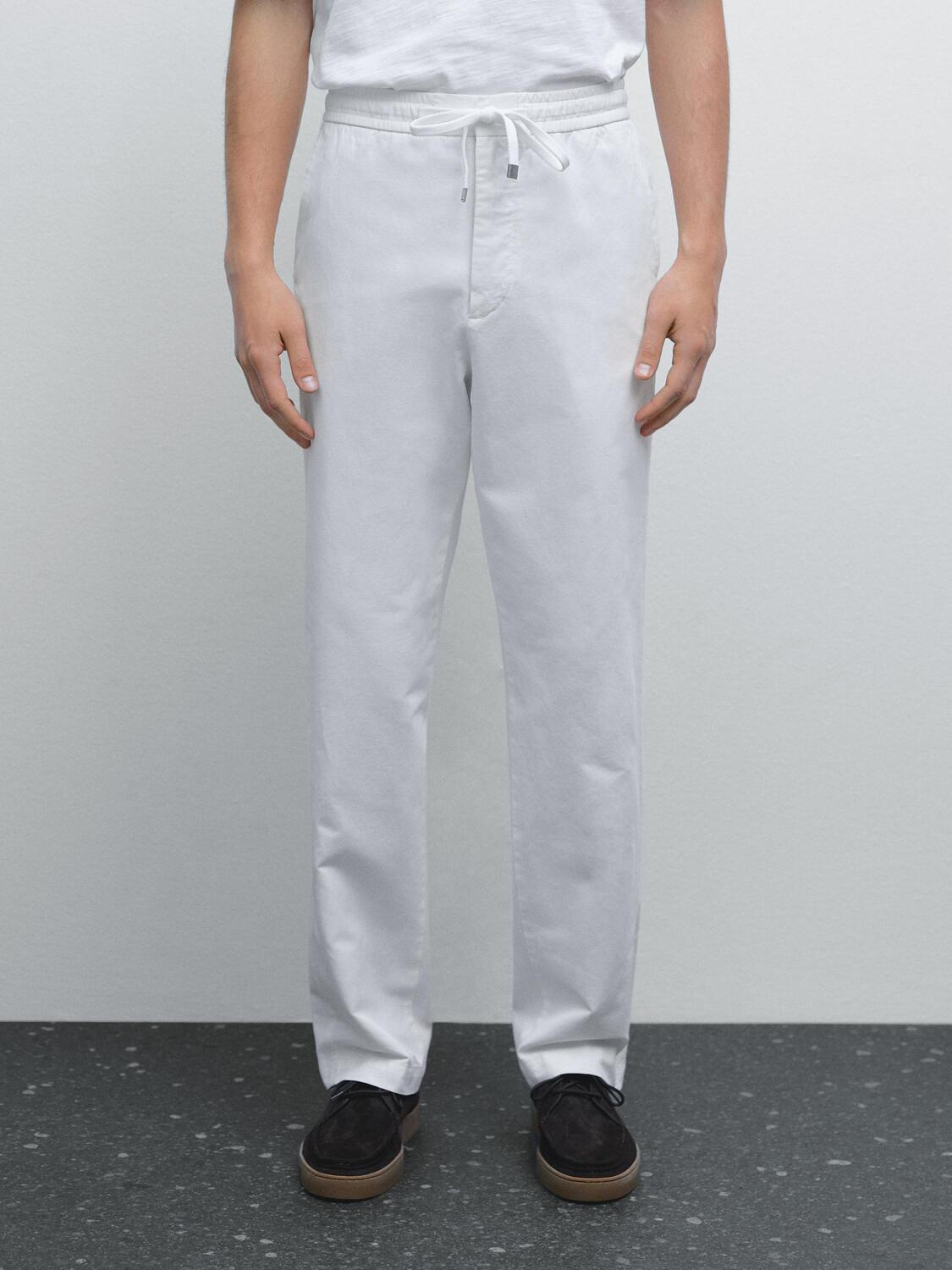 Брюки-Джоггеры из хлопковой смеси Massimo Dutti, белый