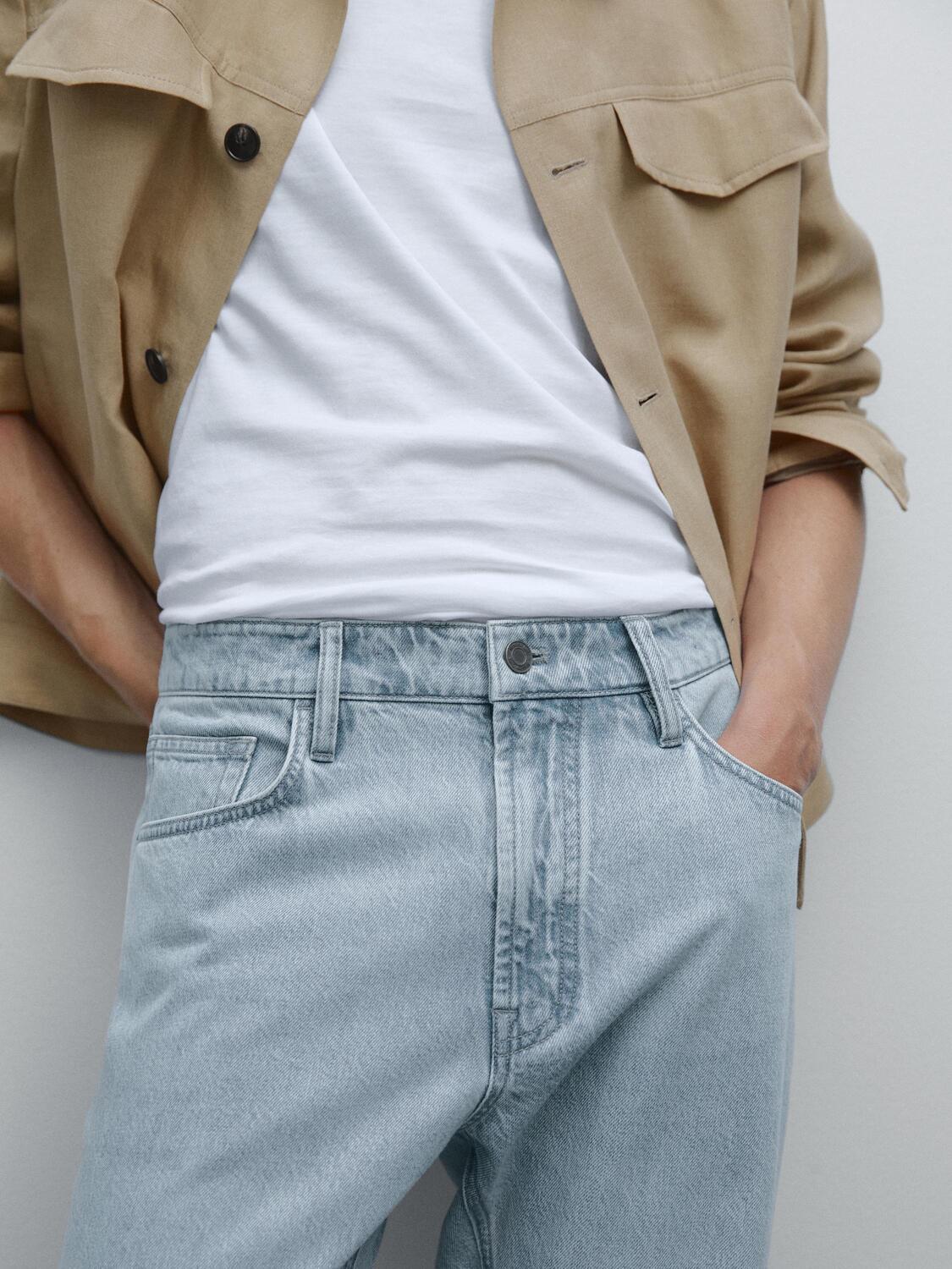 Джинсы Tapered Fit: свободный крой в области талии, плавно сужающийся к щиколоткам. Застежка на молнию и пуговицу сверху спереди. Пять карманов.