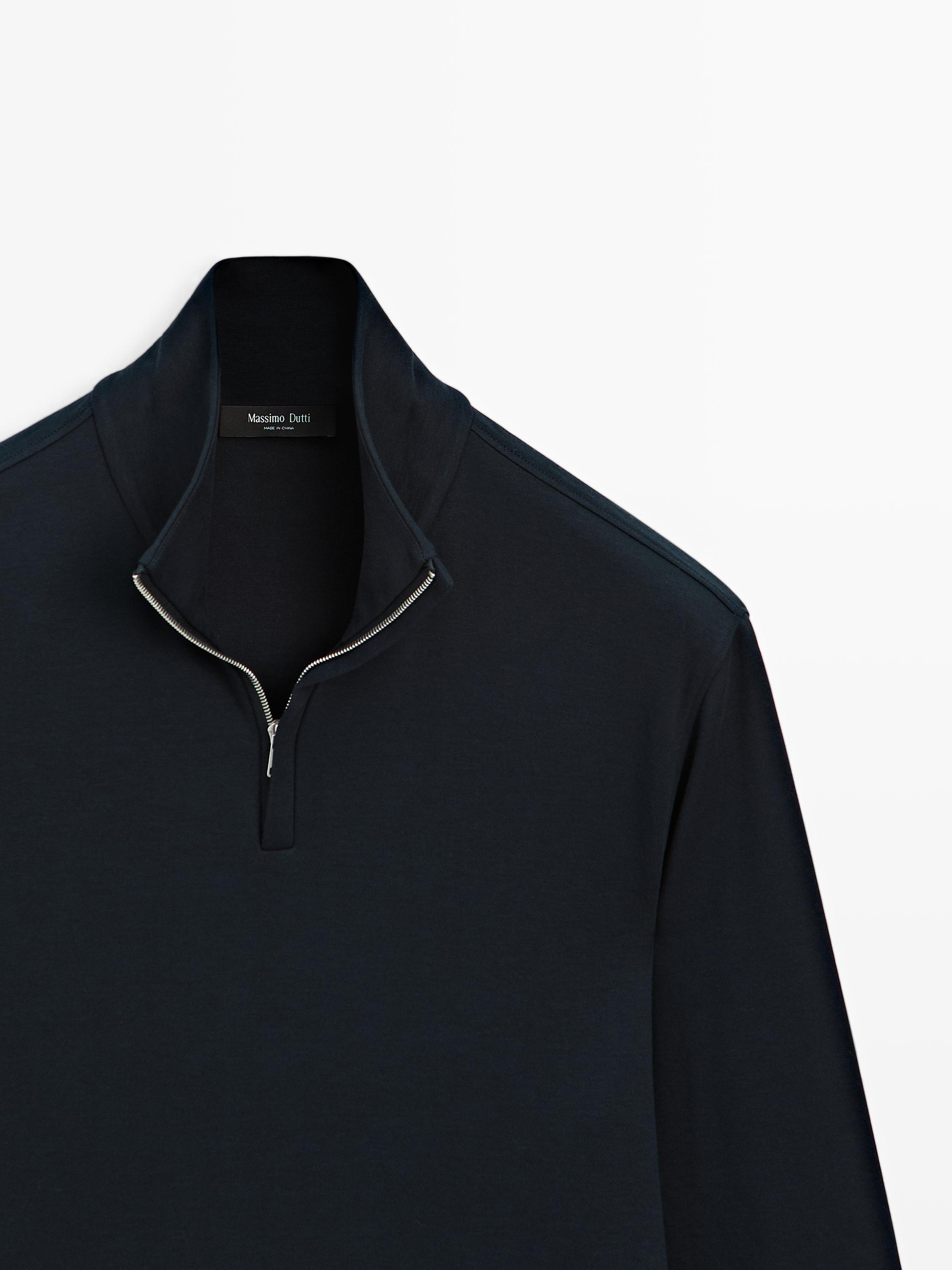 Рубашка-Поло с высоким воротом на молнии Massimo Dutti, темно-синий 4 685₽