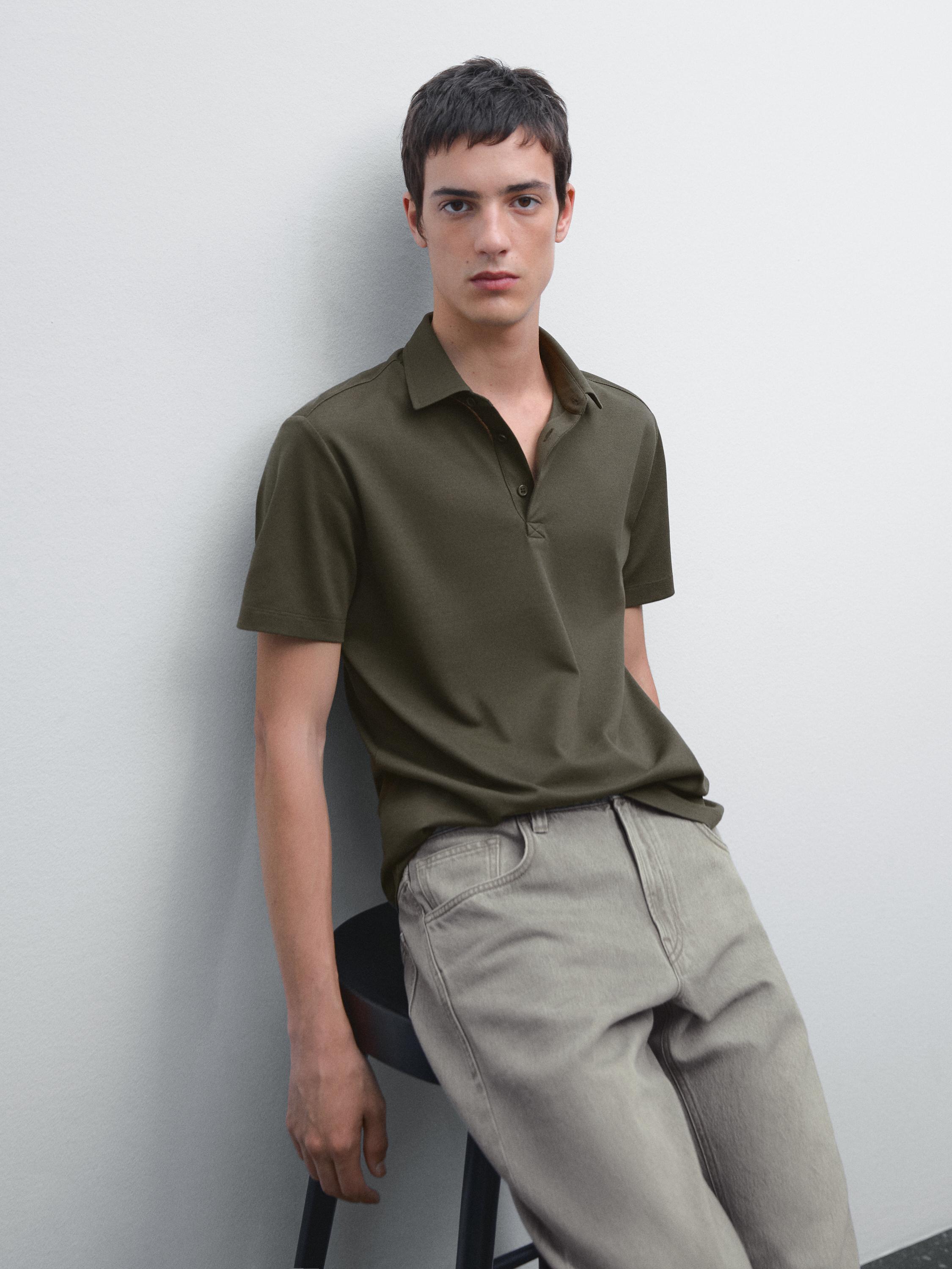 Текстурированная рубашка-поло с короткими рукавами Massimo Dutti, Moss