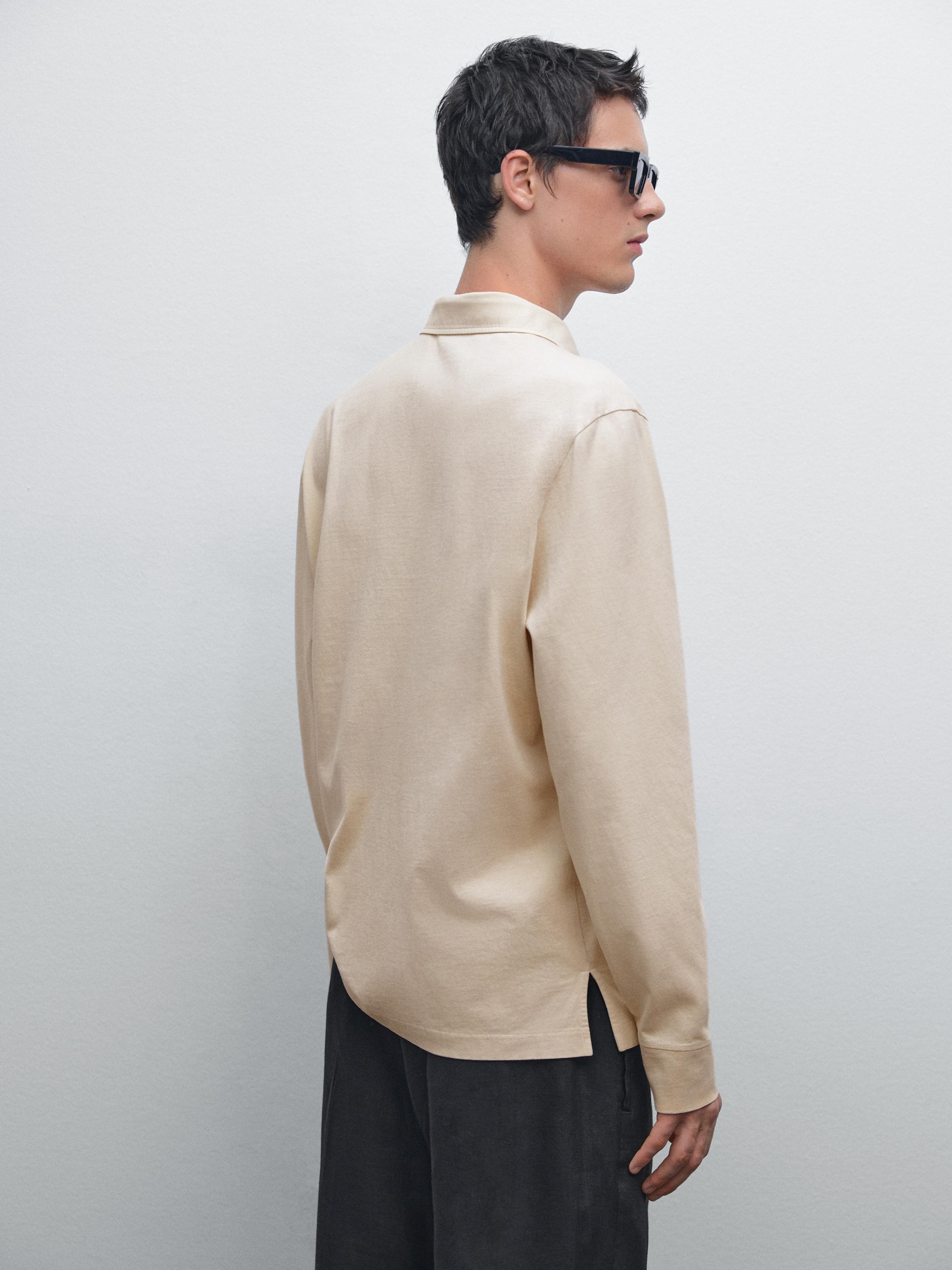 Рубашка-Поло из 100% хлопка с эффектом потертости Massimo Dutti, кремовый