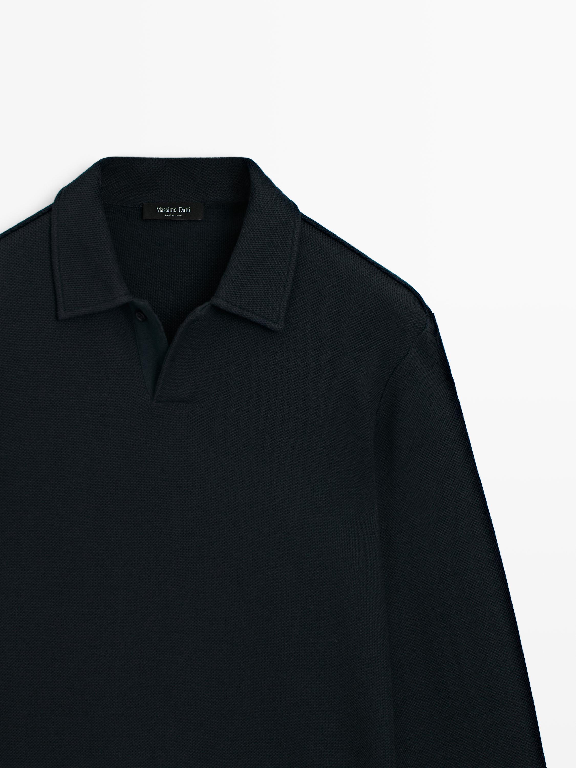 Текстурированная рубашка-поло с длинным рукавом Massimo Dutti, темно-синий 5 031₽