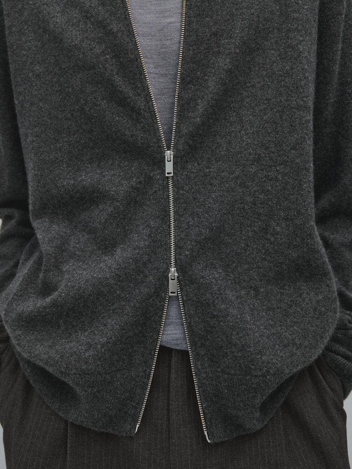 Кардиган на молнии из 100% кашемира Massimo Dutti, темно-серый