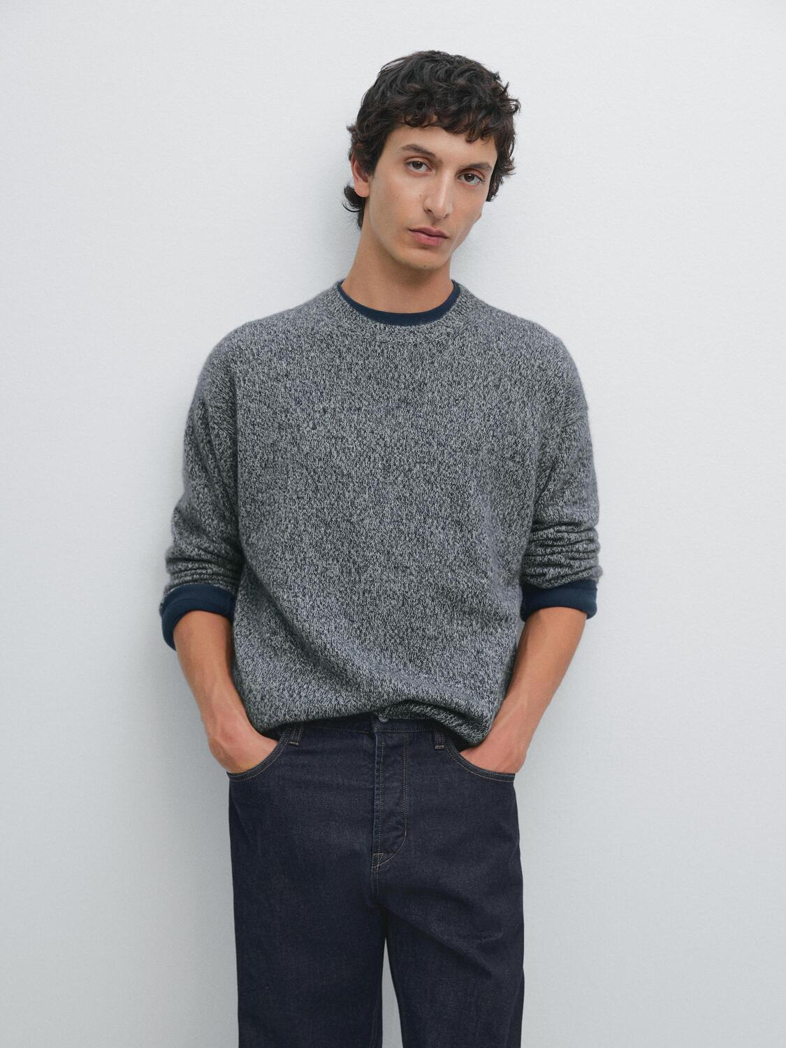 Свитер с круглым вырезом из 100% кашемира Massimo Dutti, темно-синий