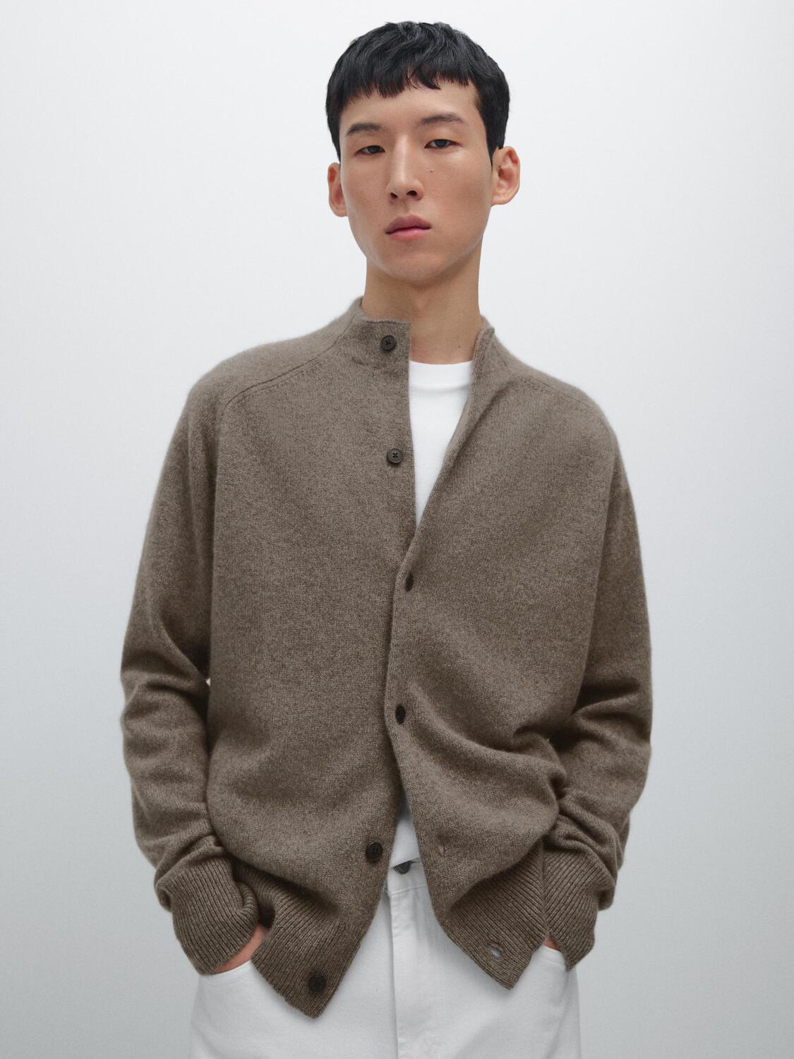 Кардиган из 100% кашемира Massimo Dutti, Dark Khaki