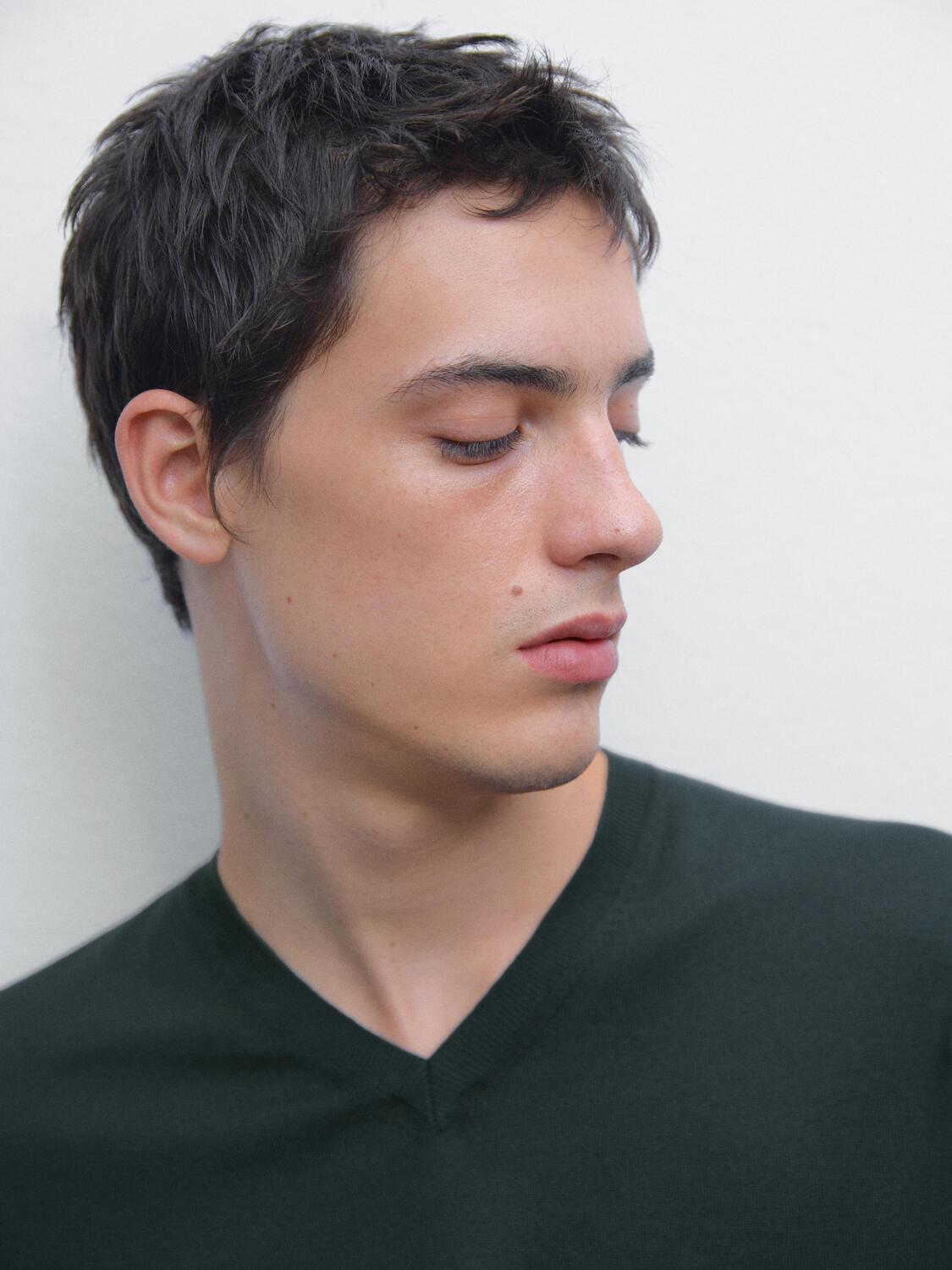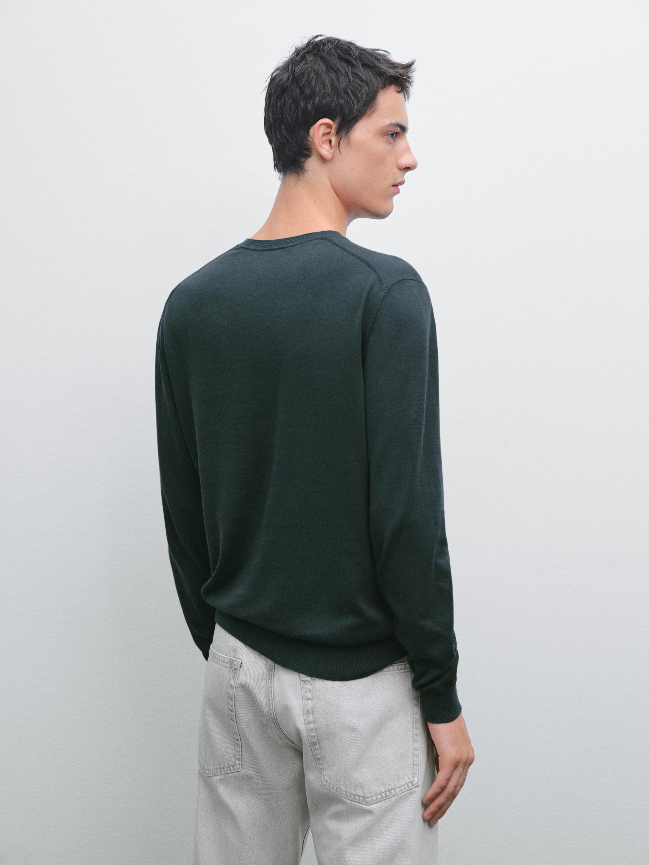 Вязаный свитер с V-образным вырезом Massimo Dutti, синий 3 886₽