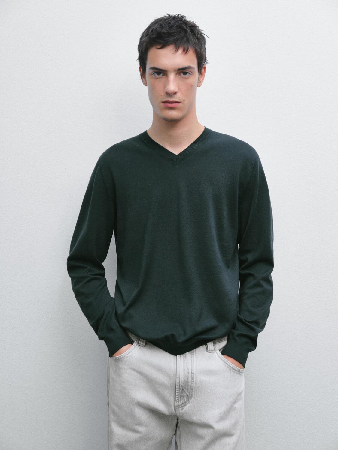 Вязаный свитер с V-образным вырезом Massimo Dutti, синий