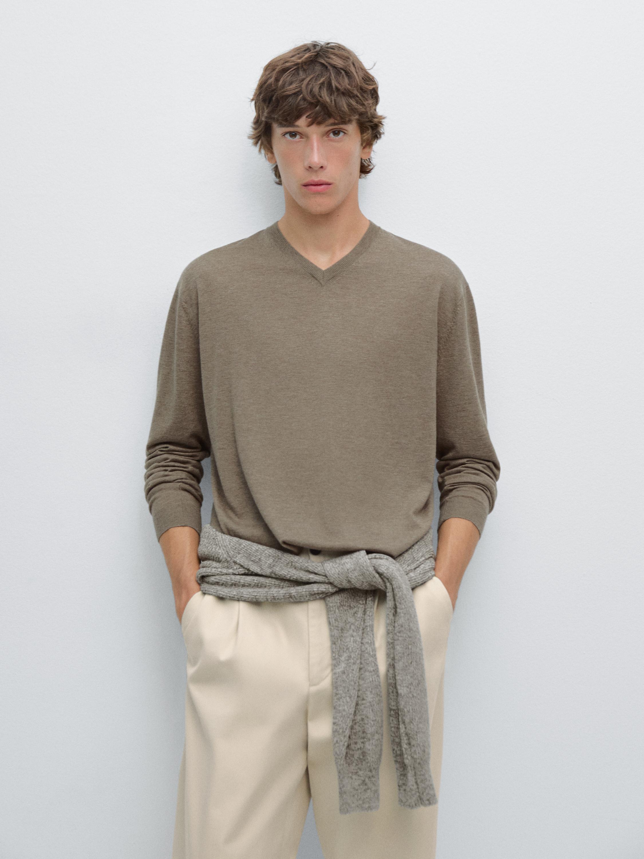 Вязаный свитер из смесовой шерсти Massimo Dutti, хаки 5 095₽