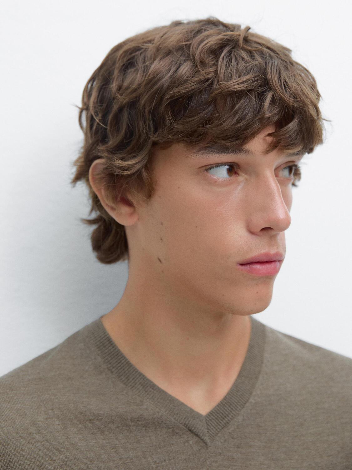Свитер из смесовой шерсти. V-образный вырез. Длинные рукава. Мягкая, приятная на ощупь ткань.