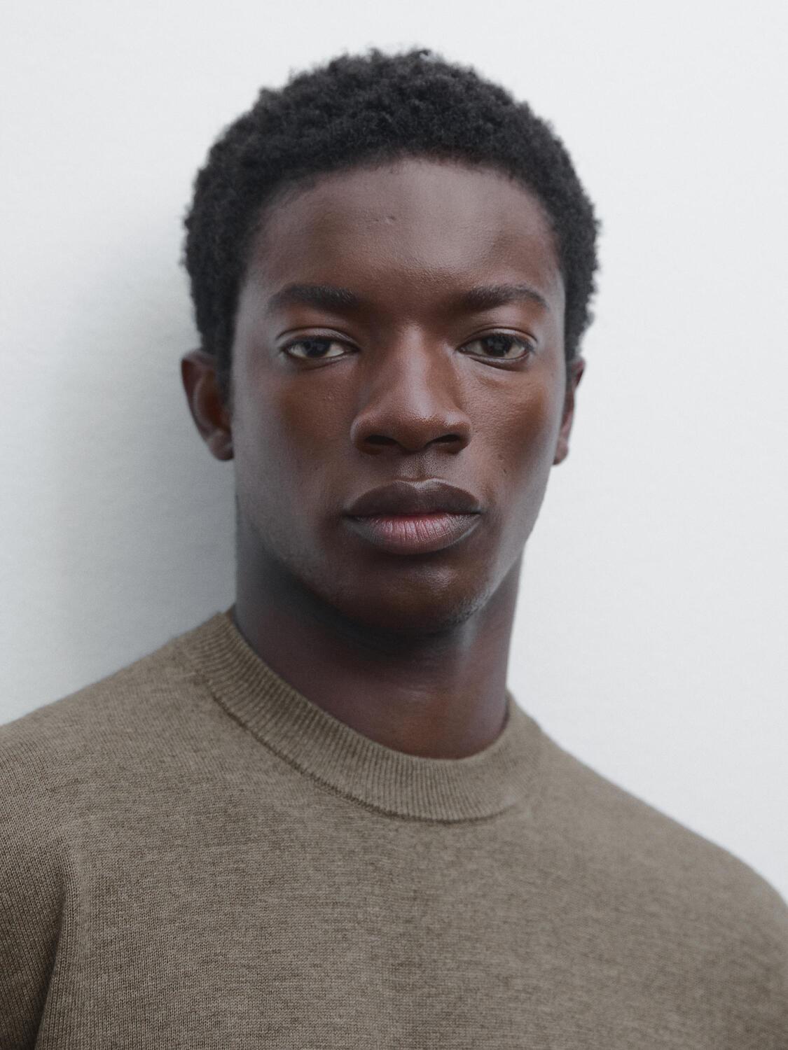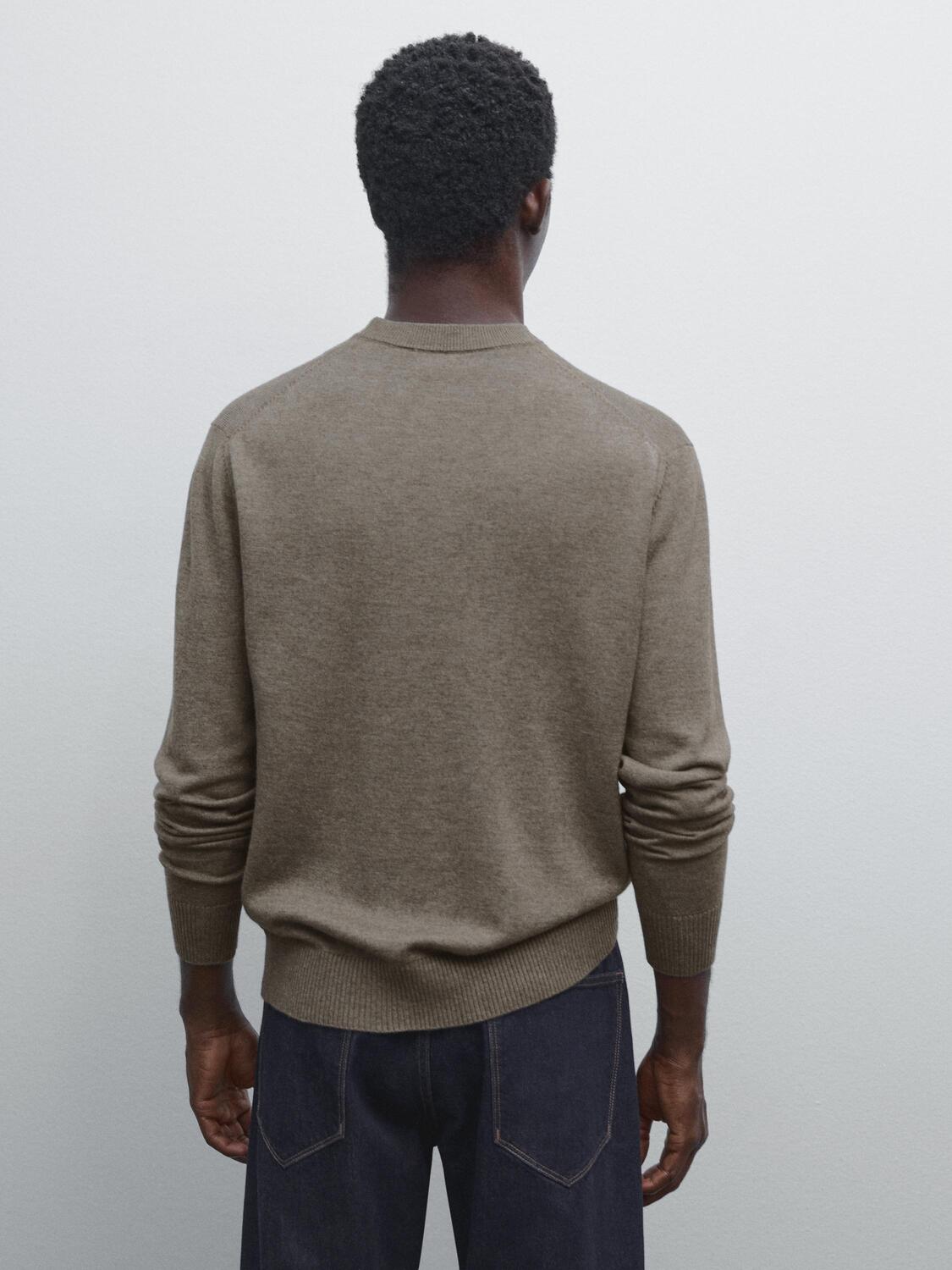 Вязаный свитер с круглым вырезом Massimo Dutti, Dark Khaki