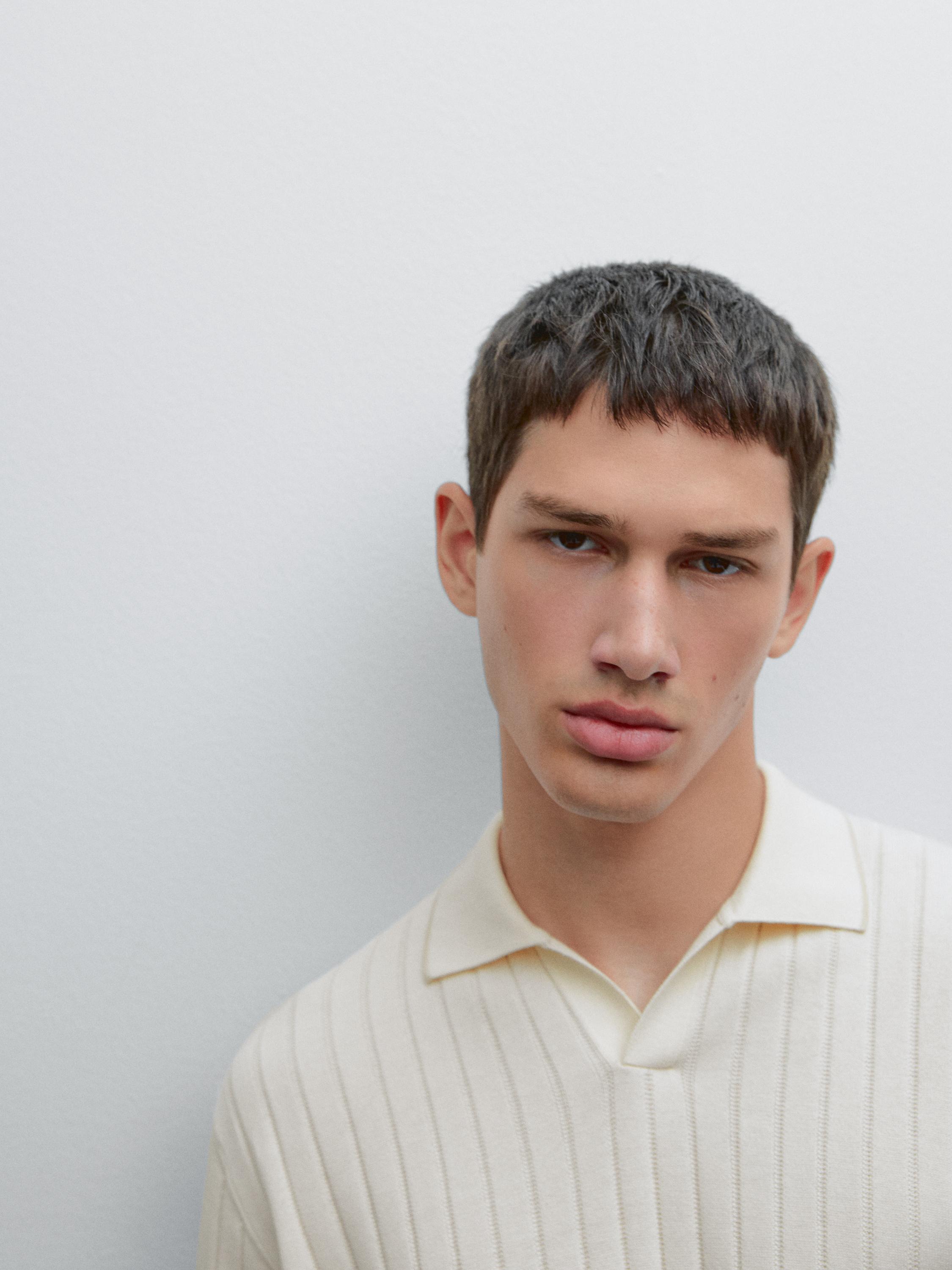 Рубашка-Поло из рубчатого трикотажа Massimo Dutti, кремовый 3 294₽