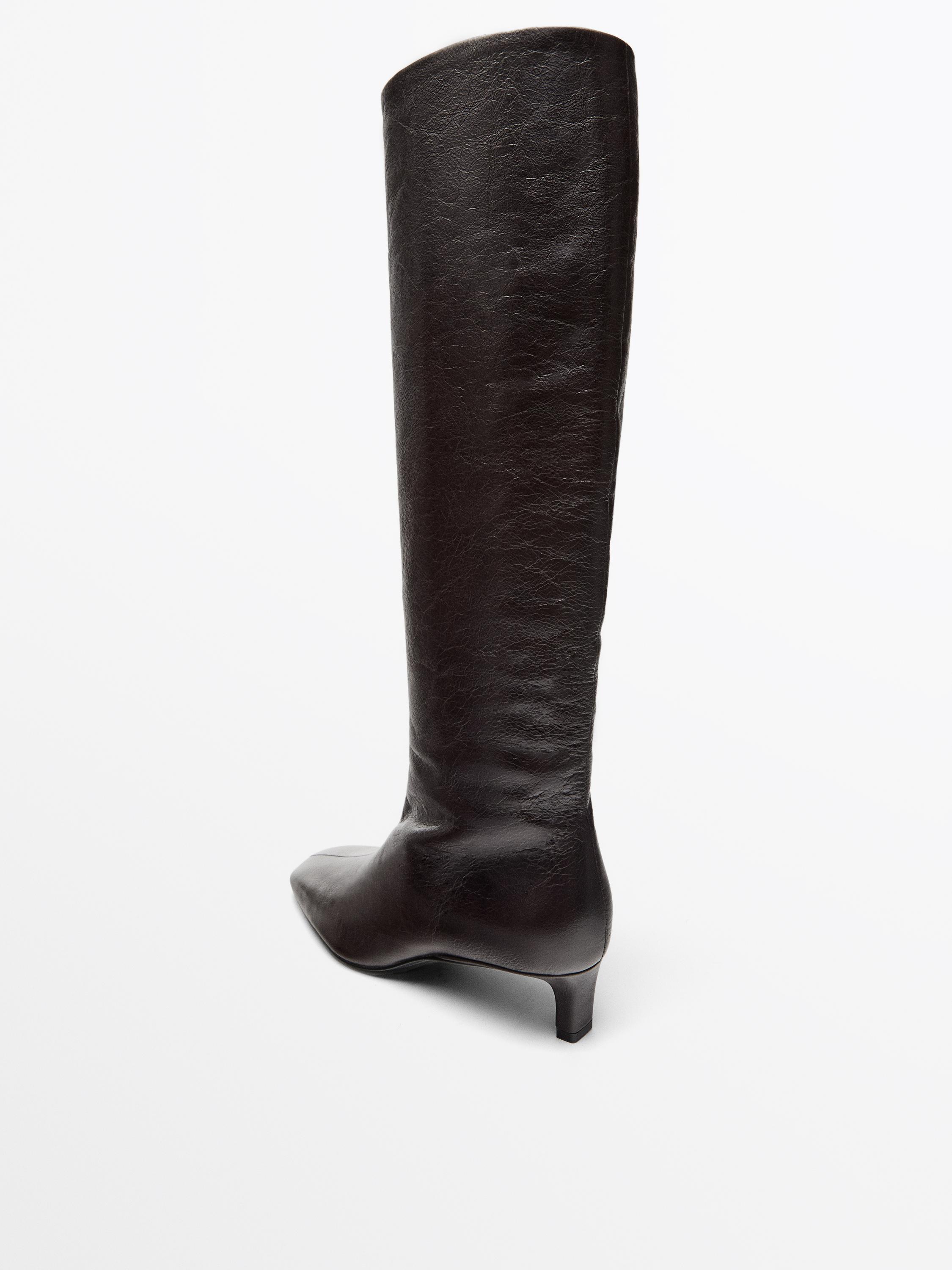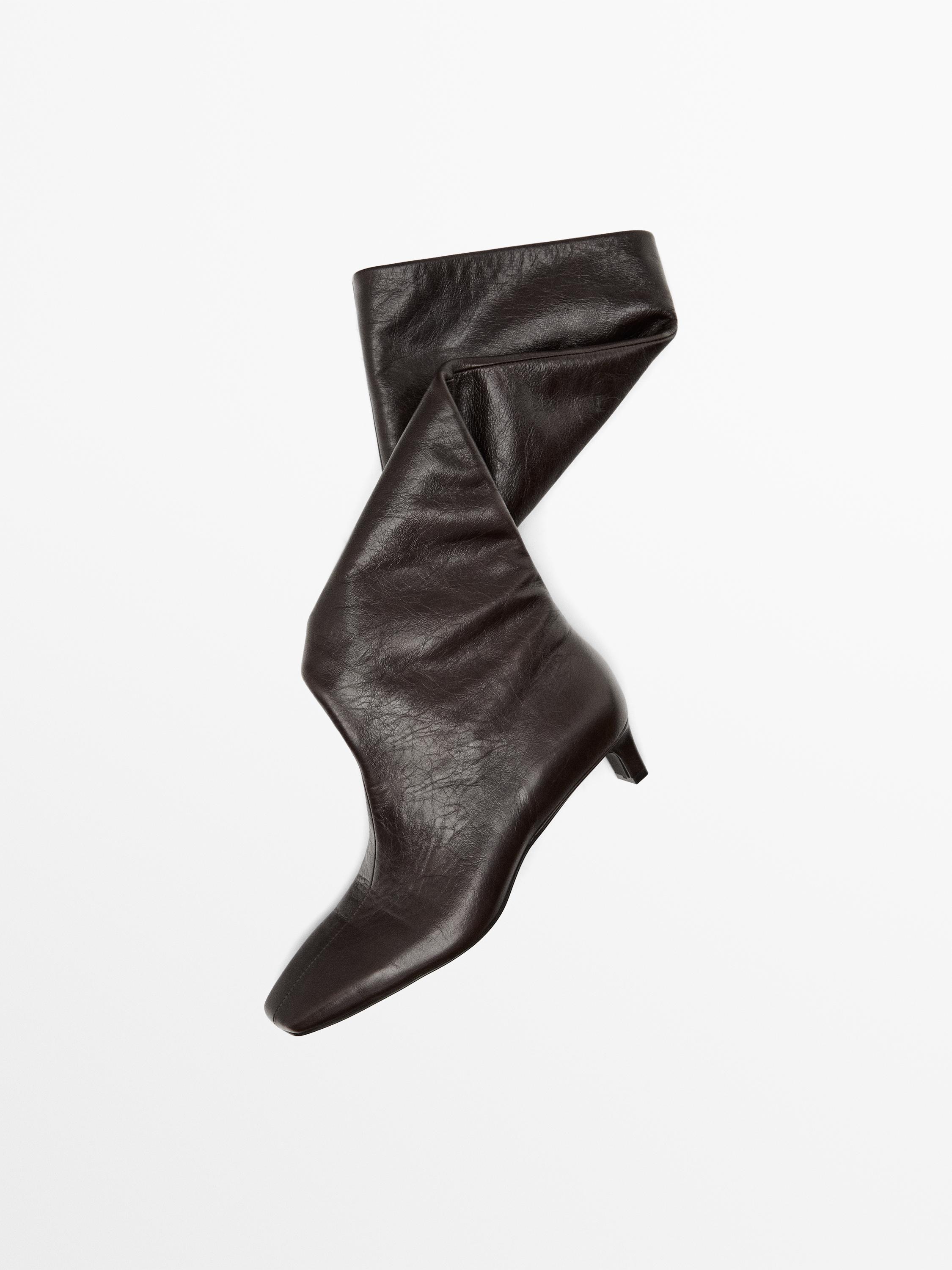 Кожаные ботинки с квадратным мыском Massimo Dutti, коричневый