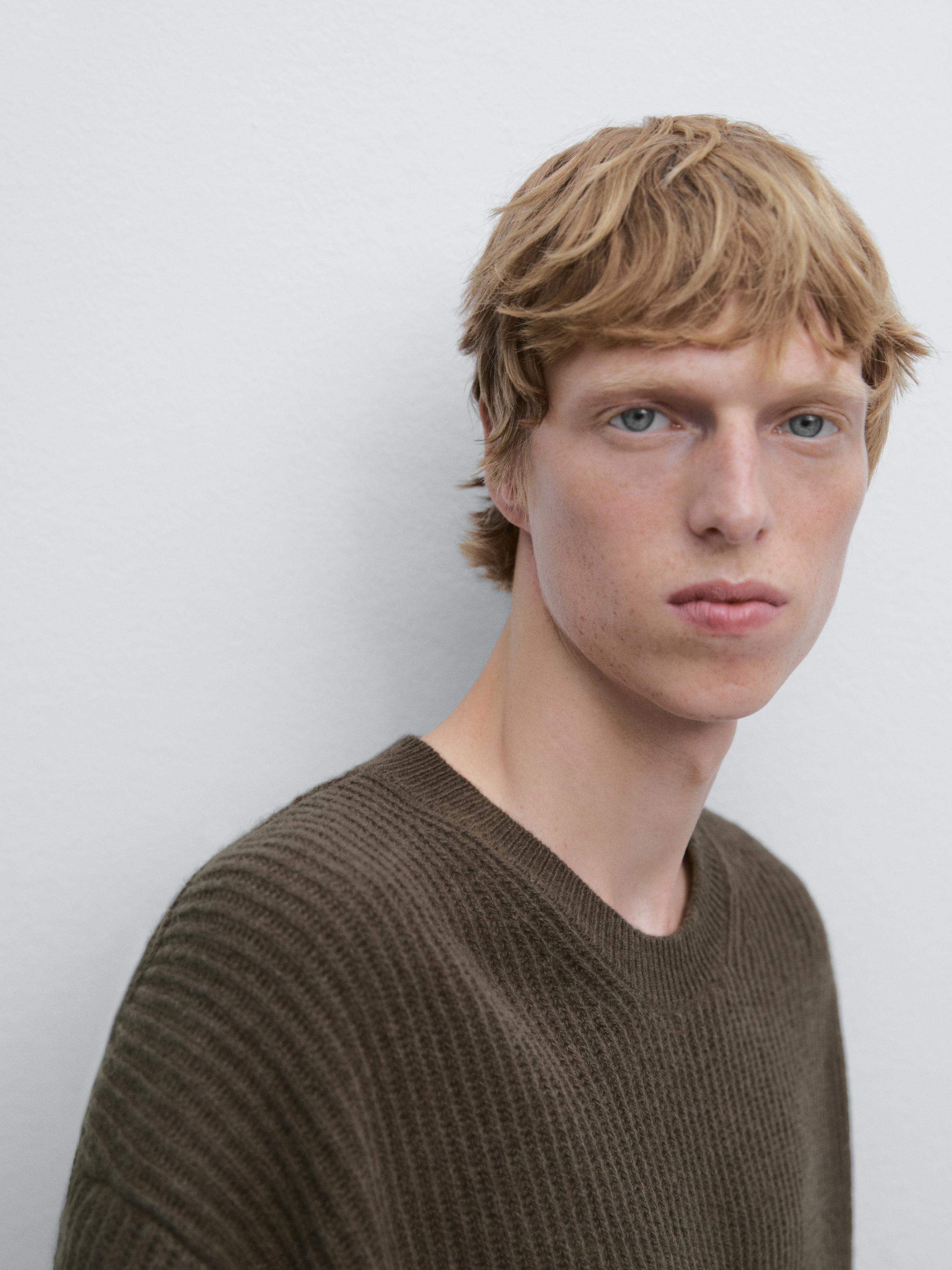 Ребристый свитер с круглым вырезом Massimo Dutti, Pale Ochre 5 594₽