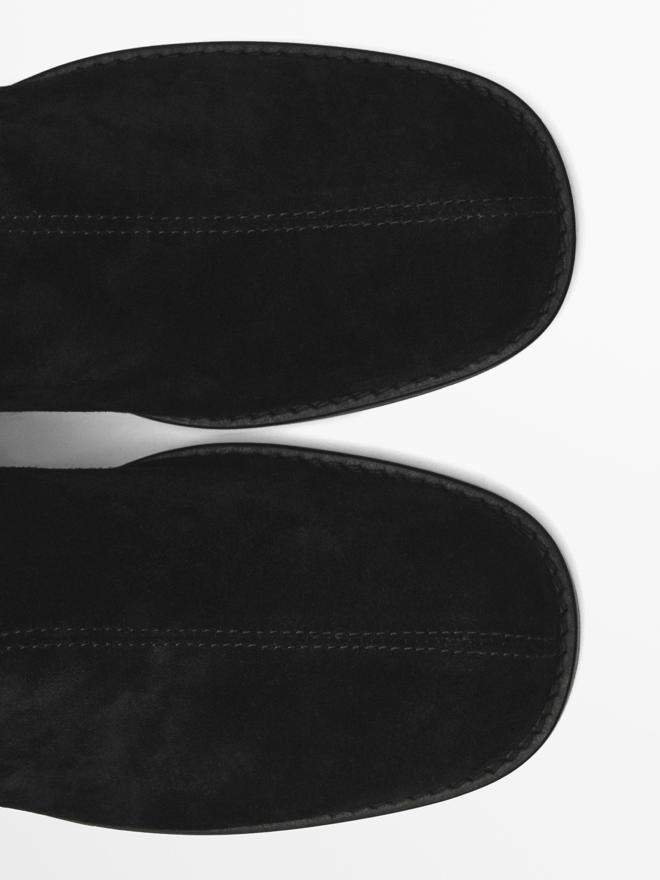 Ботильоны из замши с плоским ремешком Massimo Dutti, черный
