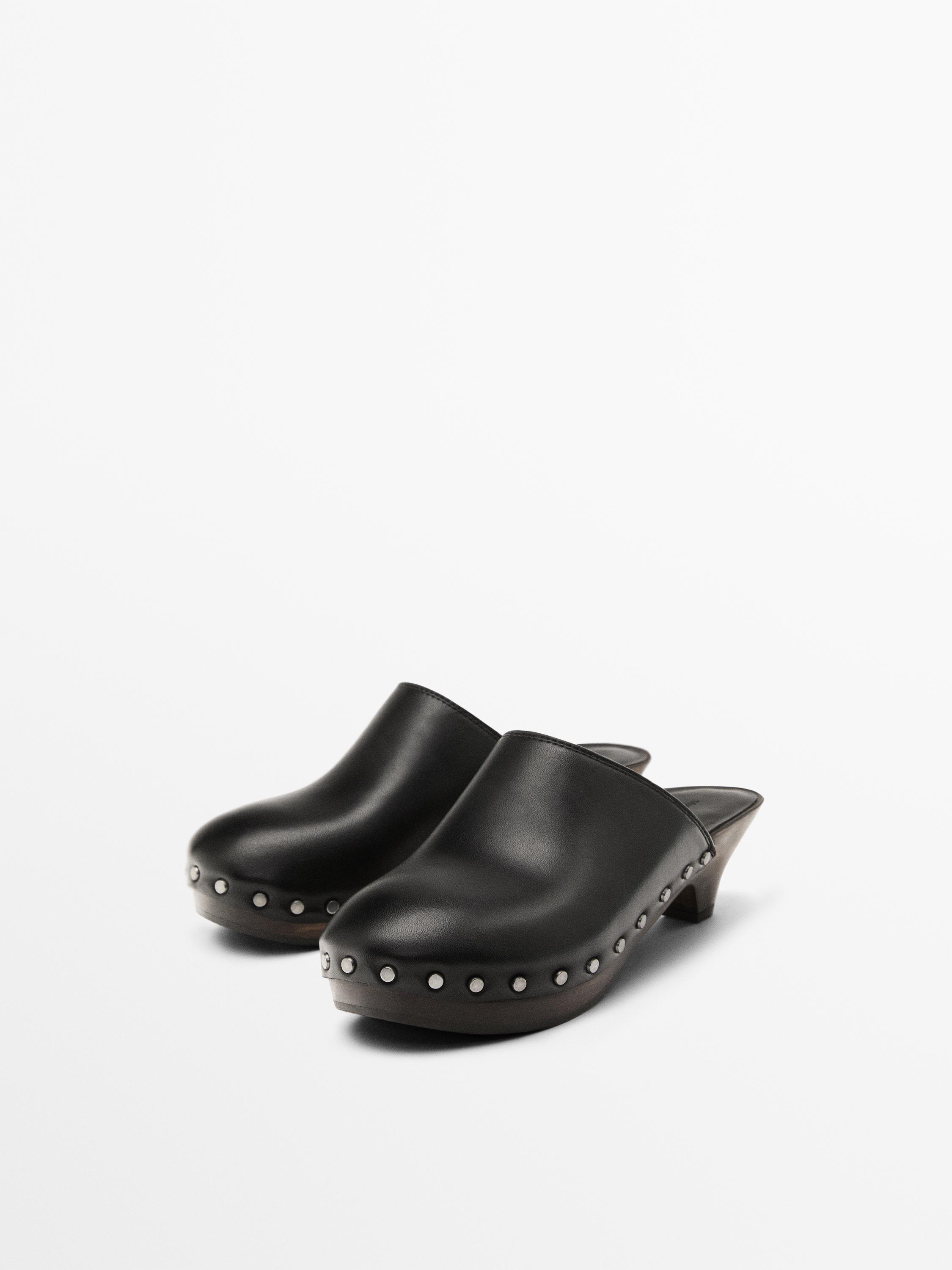 Сабо на высоком каблуке Massimo Dutti, черный