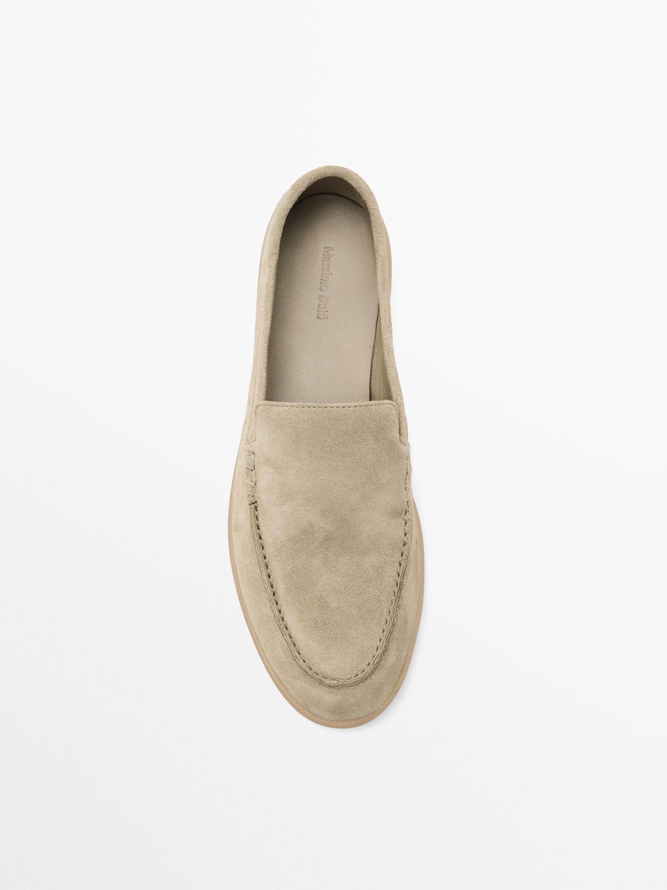 Лоферы из спилковой кожи Massimo Dutti, бежевый