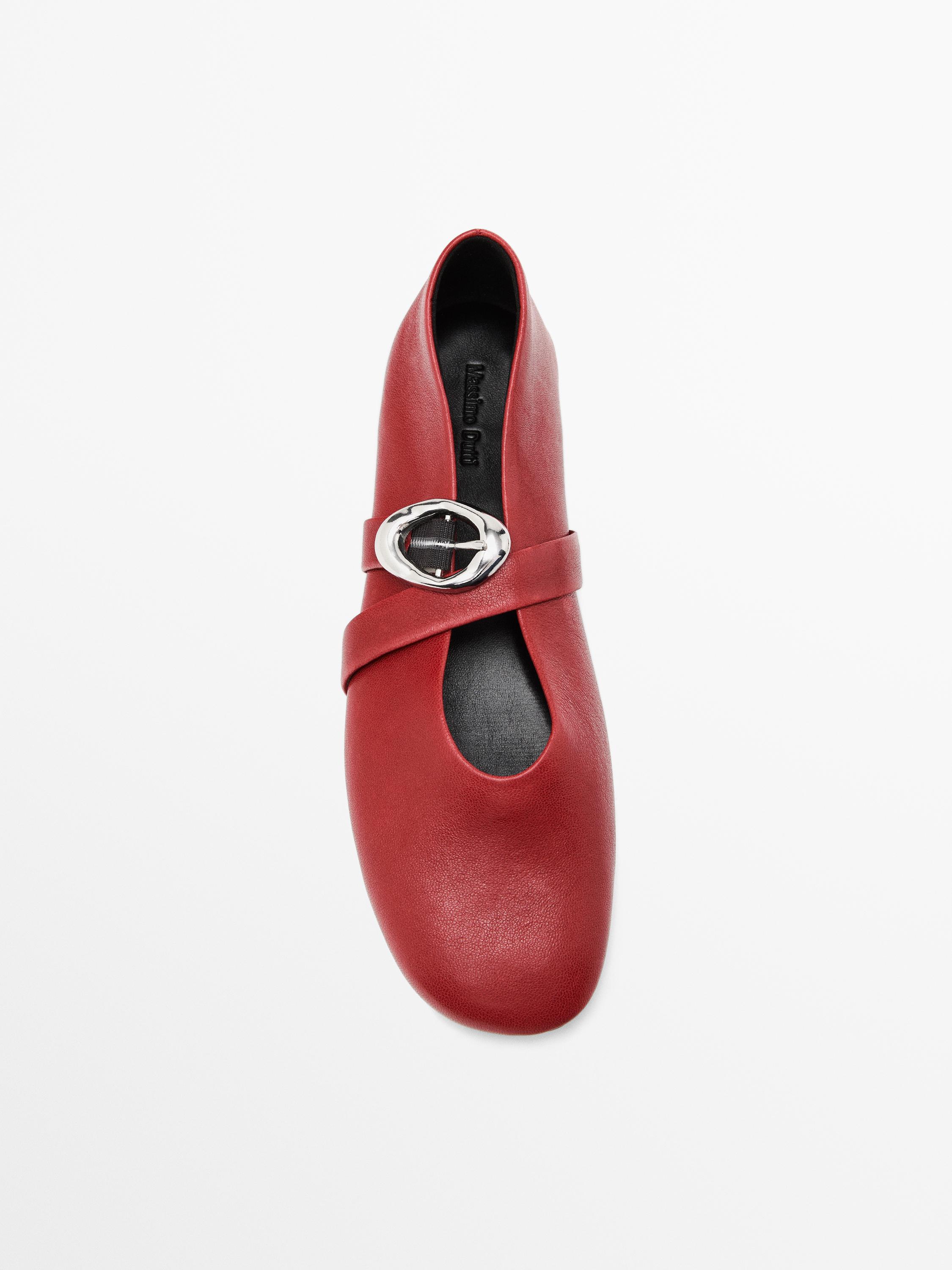 Кожаные балетки с пряжкой Massimo Dutti, красный