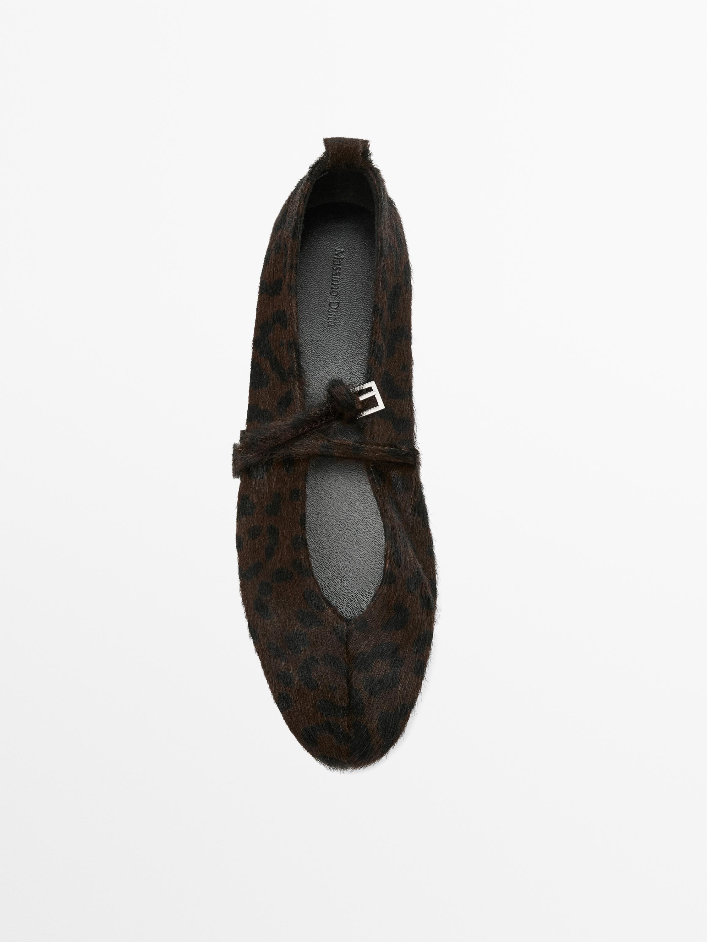 Напечатанные волосы на кожаных балетках Massimo Dutti, леопардовый принт