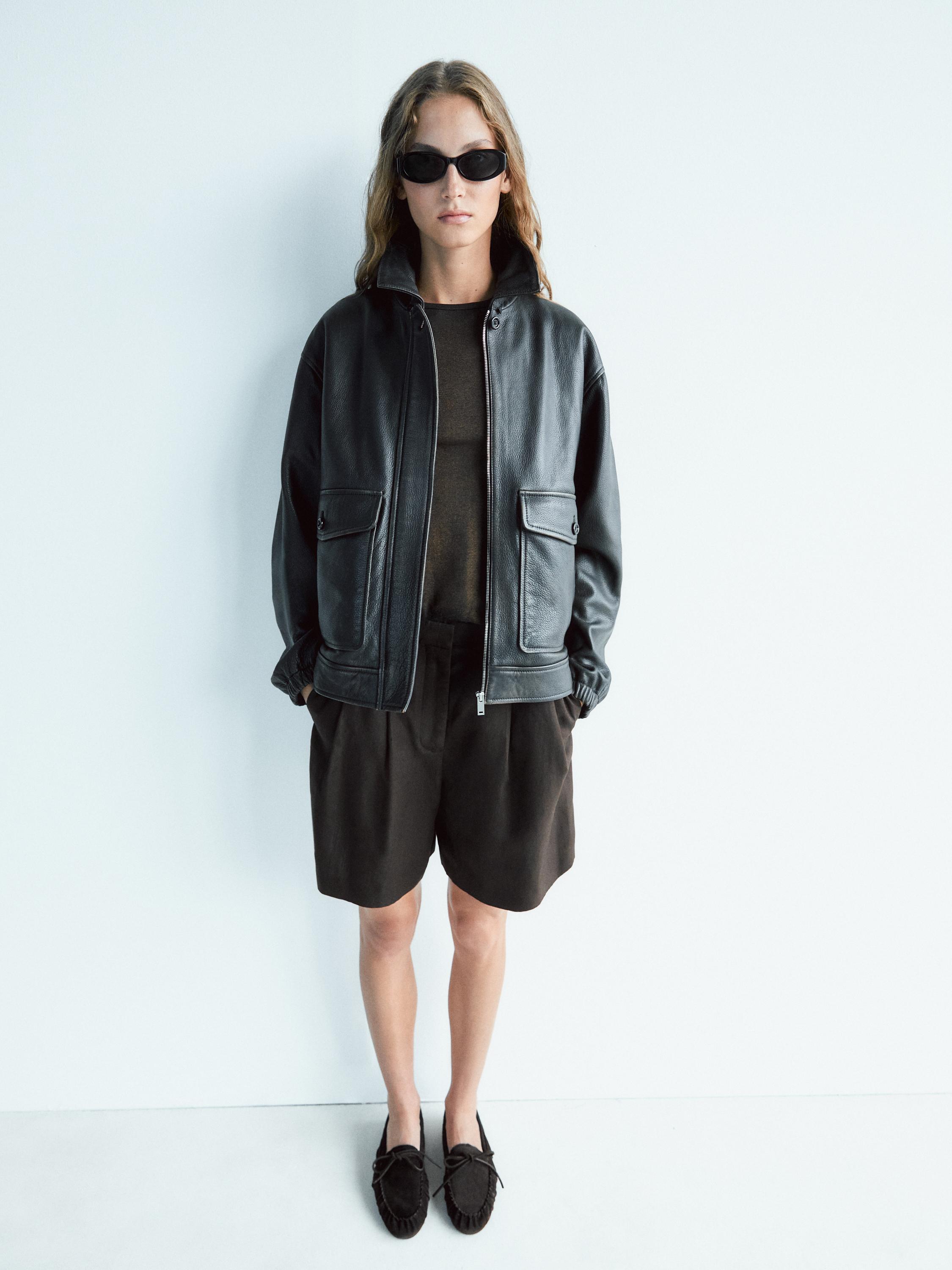 Кожаные мокасины со сборкой и бантом Massimo Dutti, коричневый