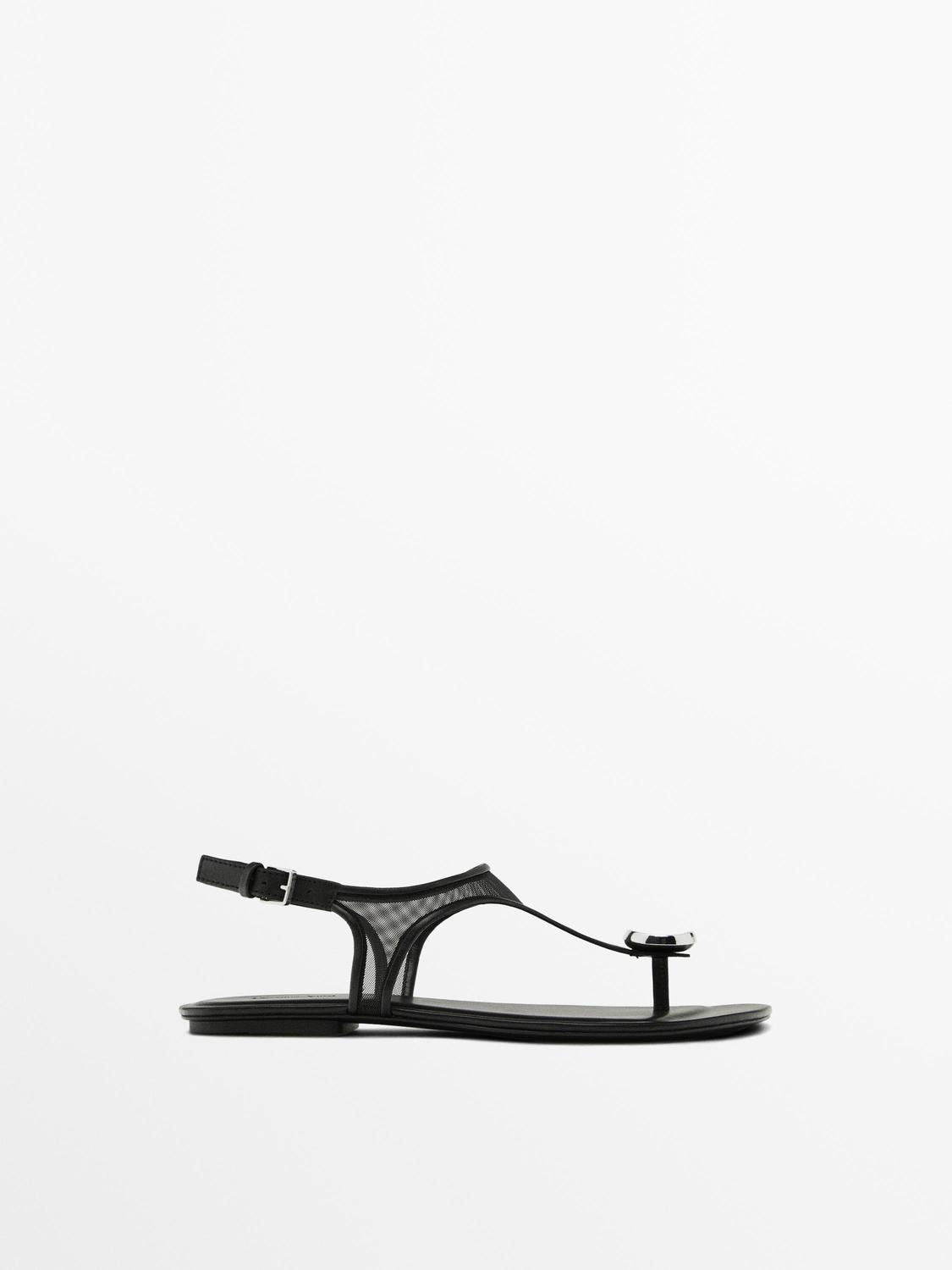 Сандалии из сетки со стразами Massimo Dutti, черный