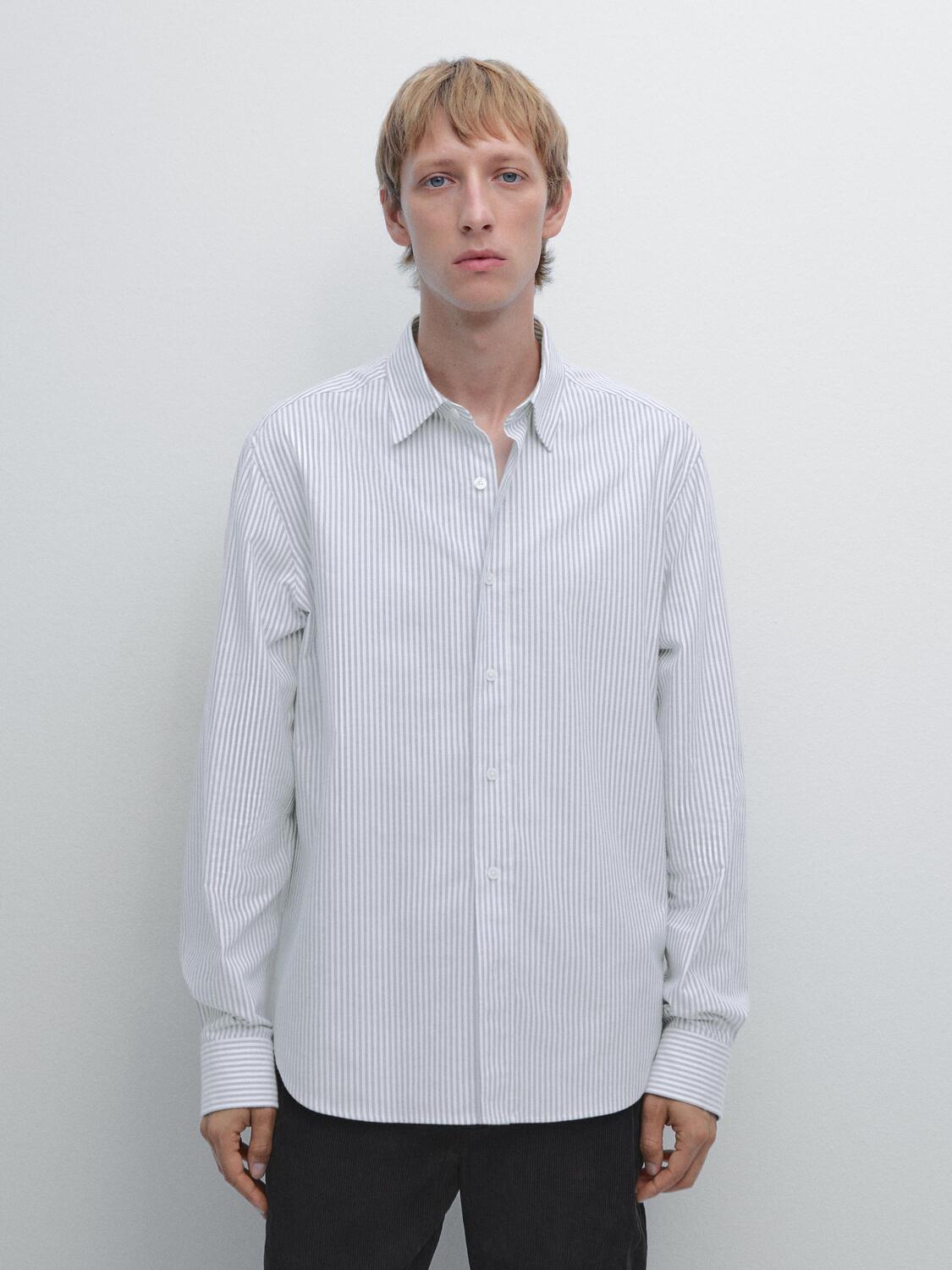 Рубашка в полоску классического кроя Massimo Dutti, темно-синий