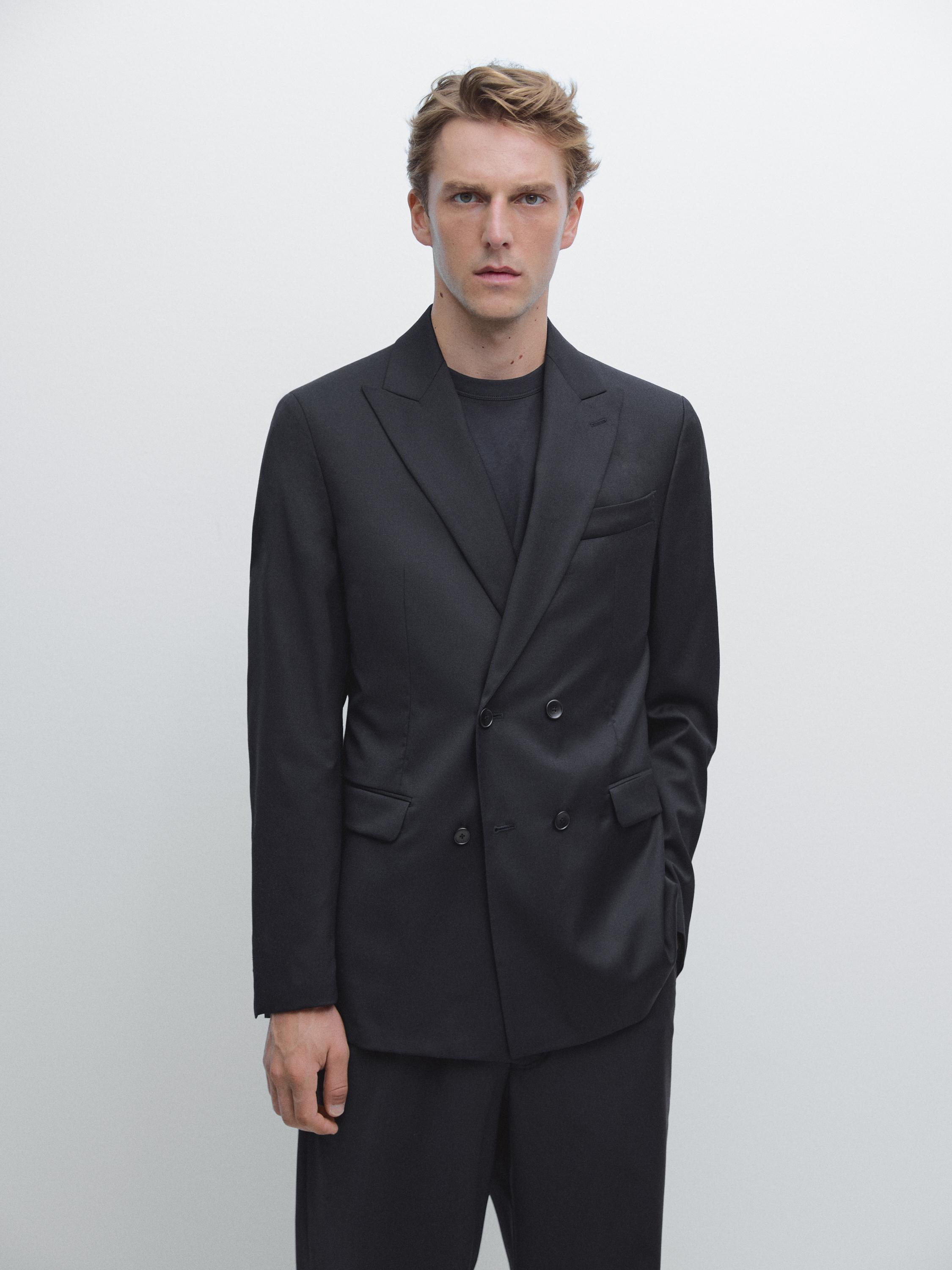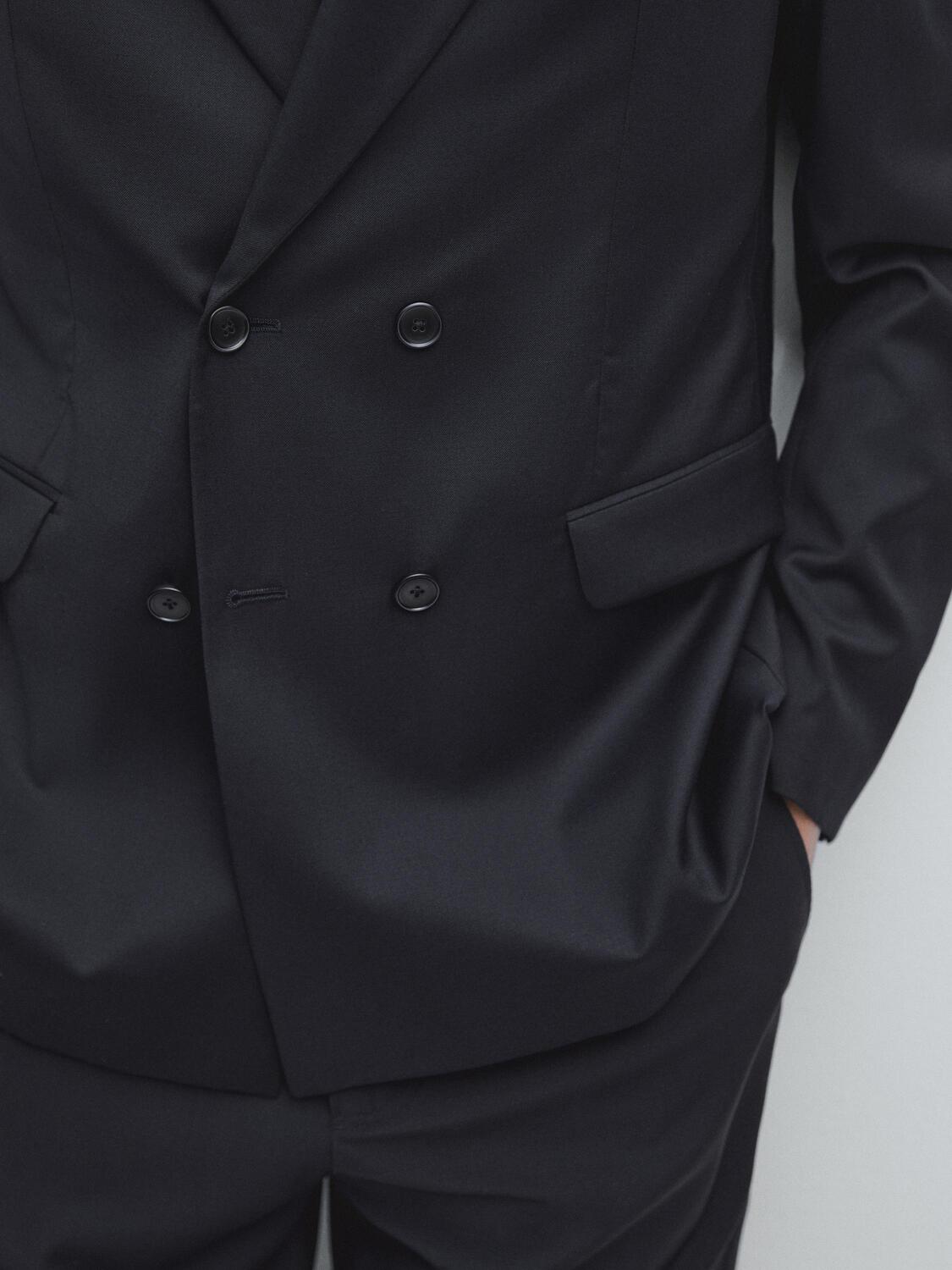 Двубортный пиджак из 100% шерсти Massimo Dutti, темно-синий 23 240₽