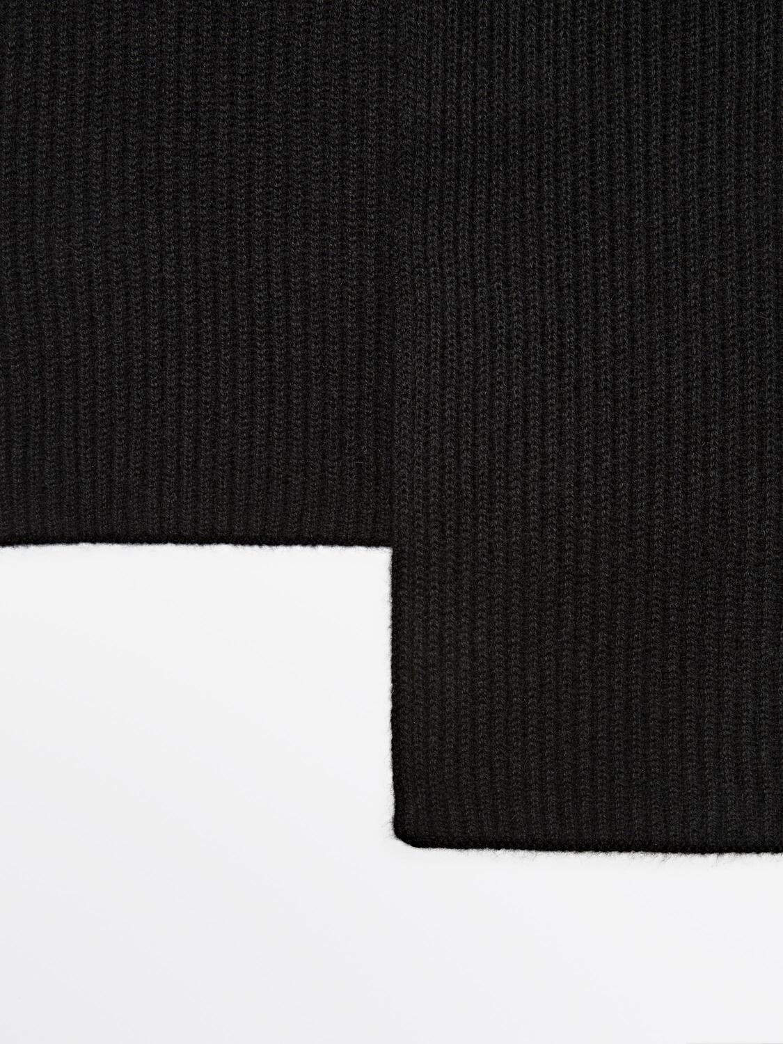 Шарф из 100% кашемира в рубчик Massimo Dutti, черный