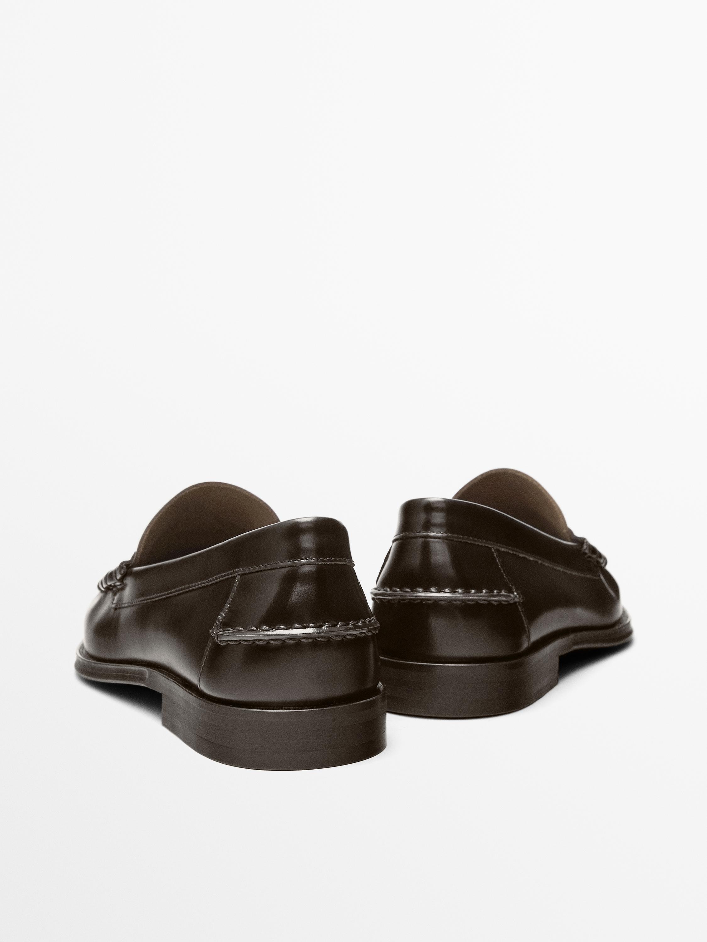Кожаные мокасины с пенни-ремешком Massimo Dutti, коричневый 17 469₽