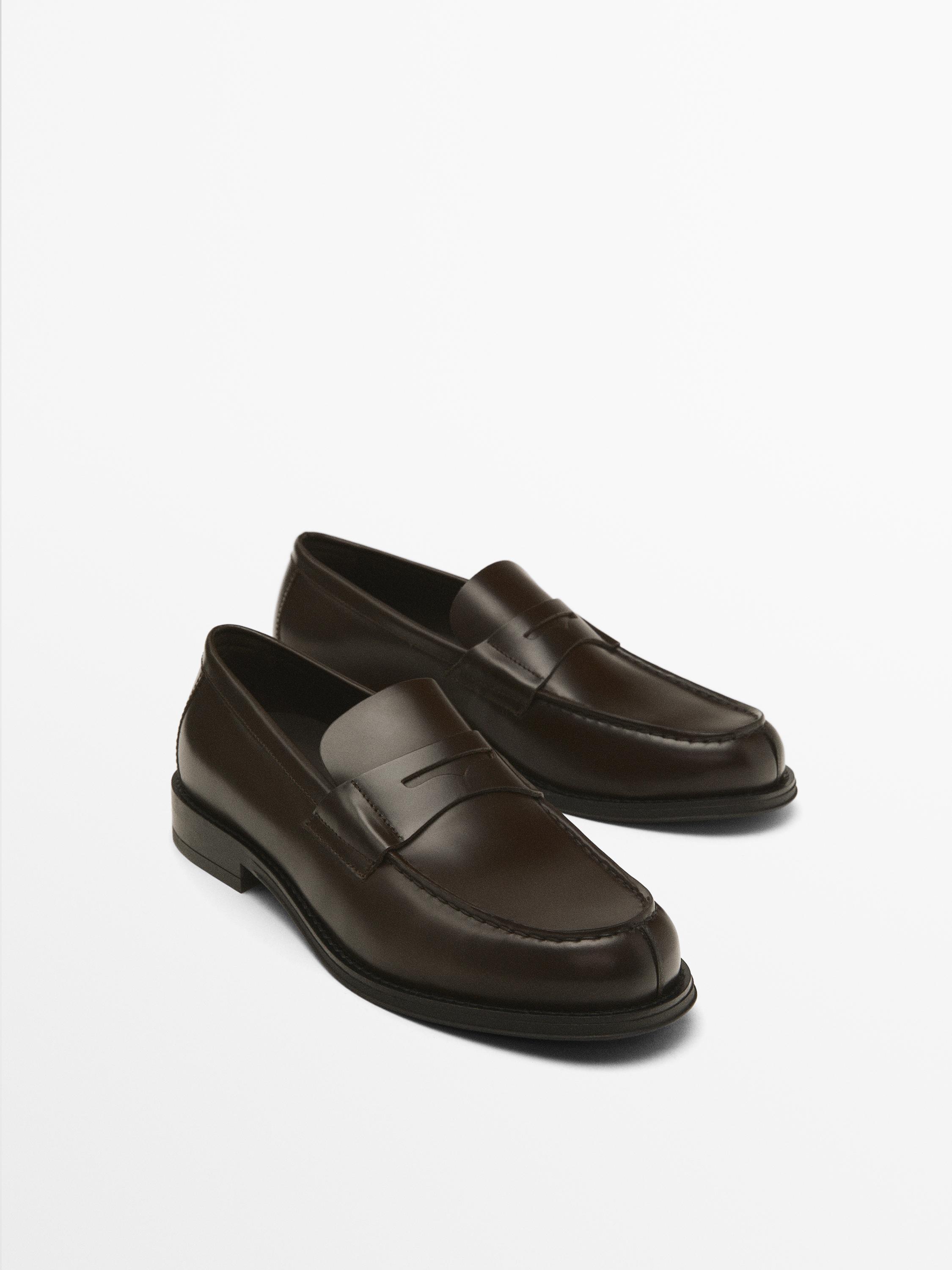 Кожаные пенни-лоферы Massimo Dutti, коричневый 12 200₽