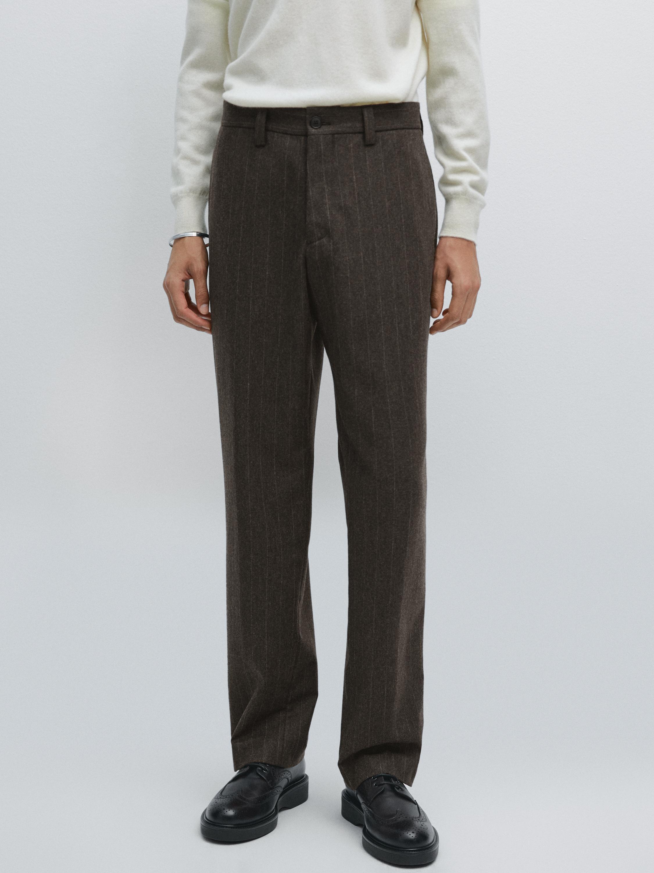Полосатые брюки из шерстяной смеси Massimo Dutti, Brown Marl