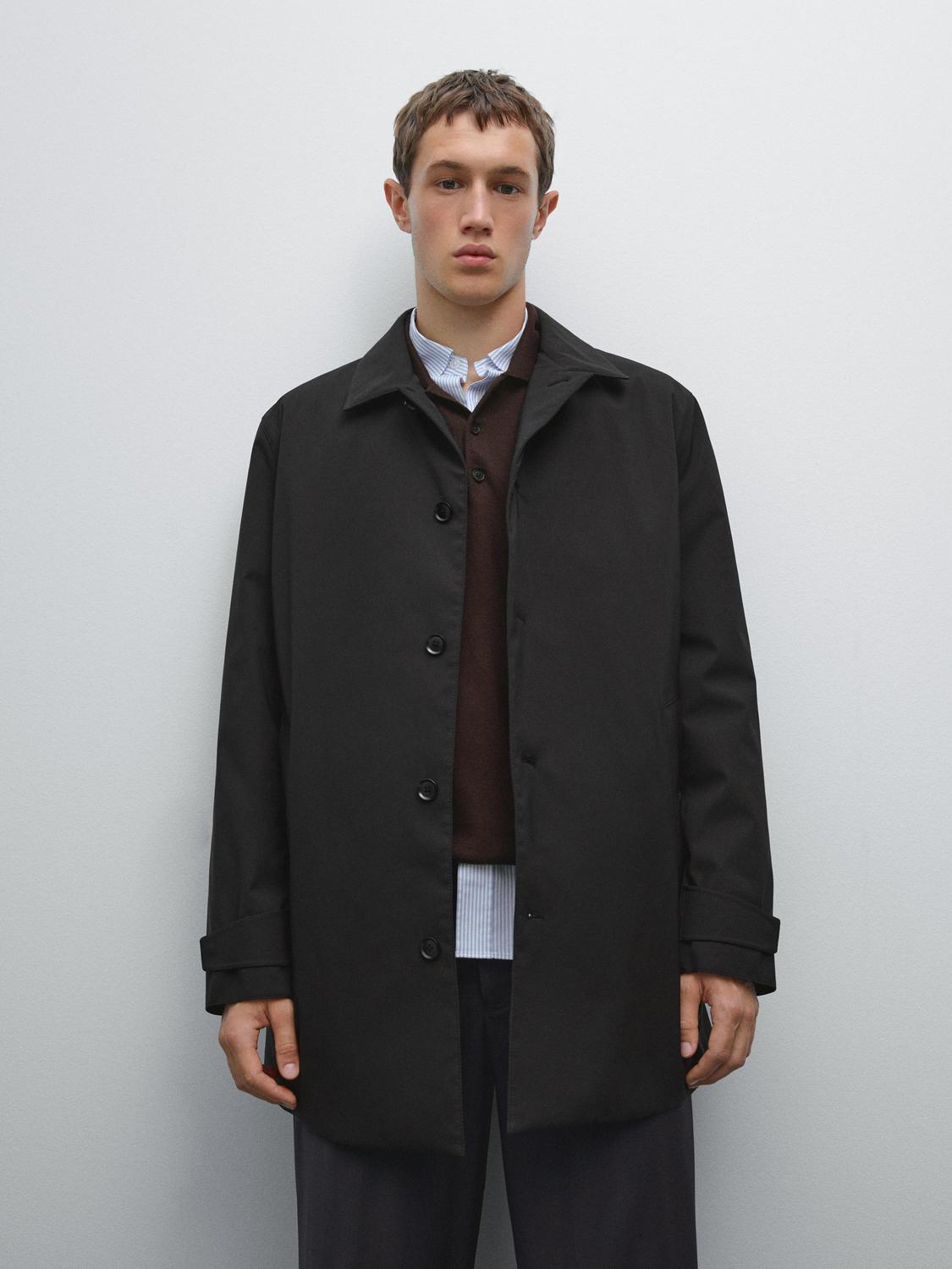 Плащ из водоотталкивающей ткани Massimo Dutti, темно-синий
