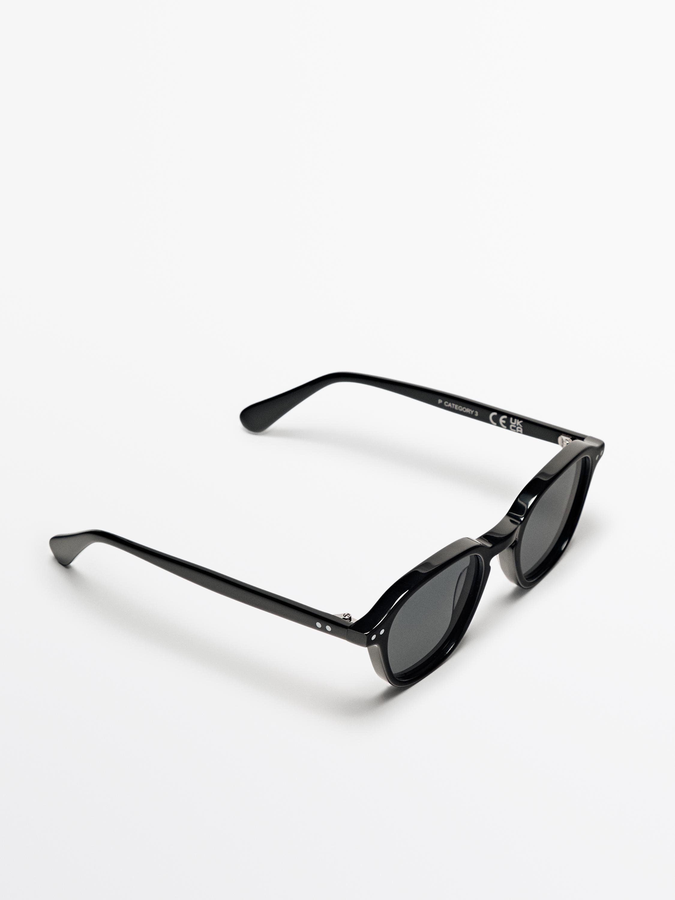 Круглые солнцезащитные очки из смолы Massimo Dutti, черный
