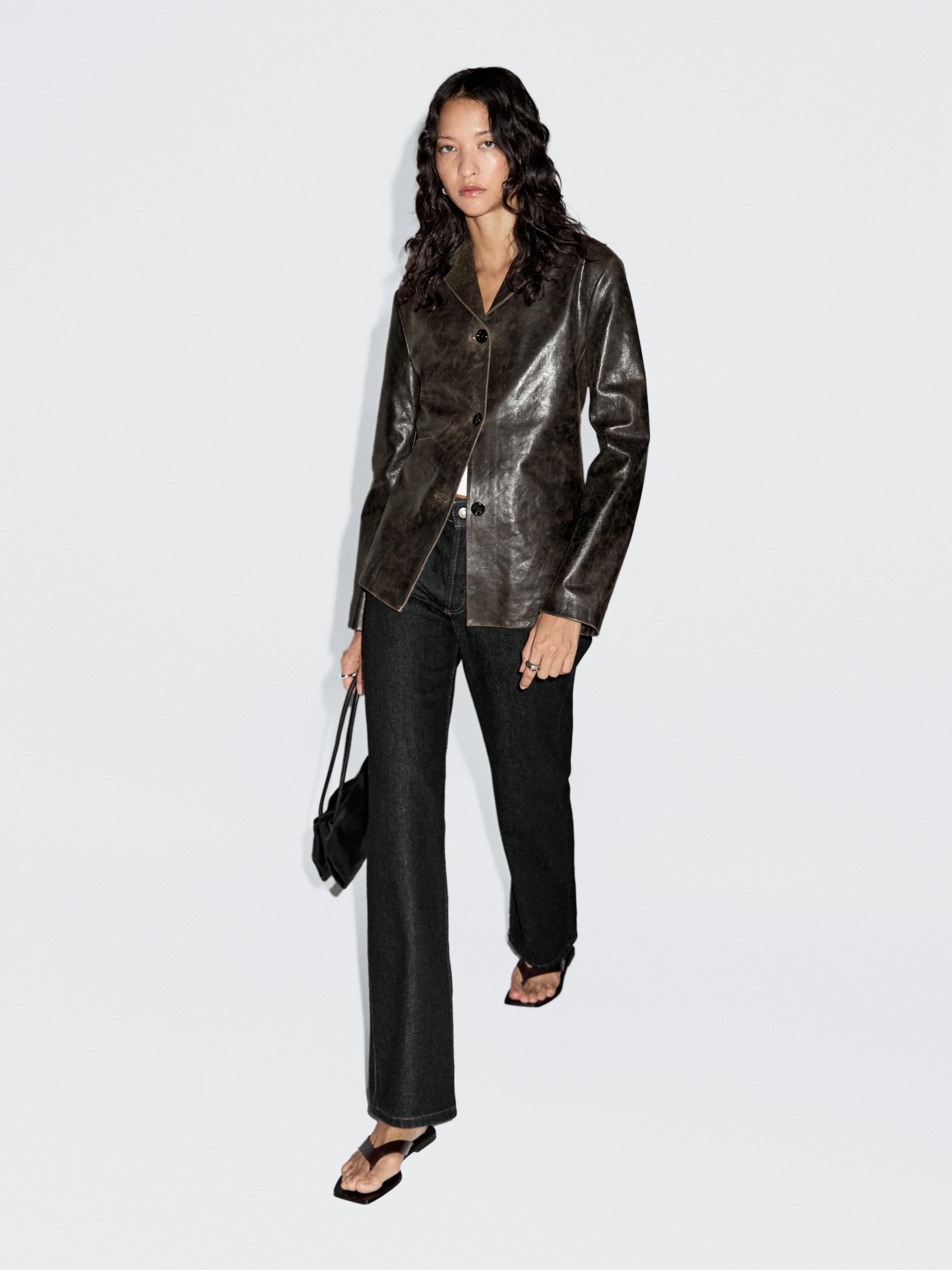 Блейзер из кожи наппа с потертостями Massimo Dutti, коричневый 19 645₽