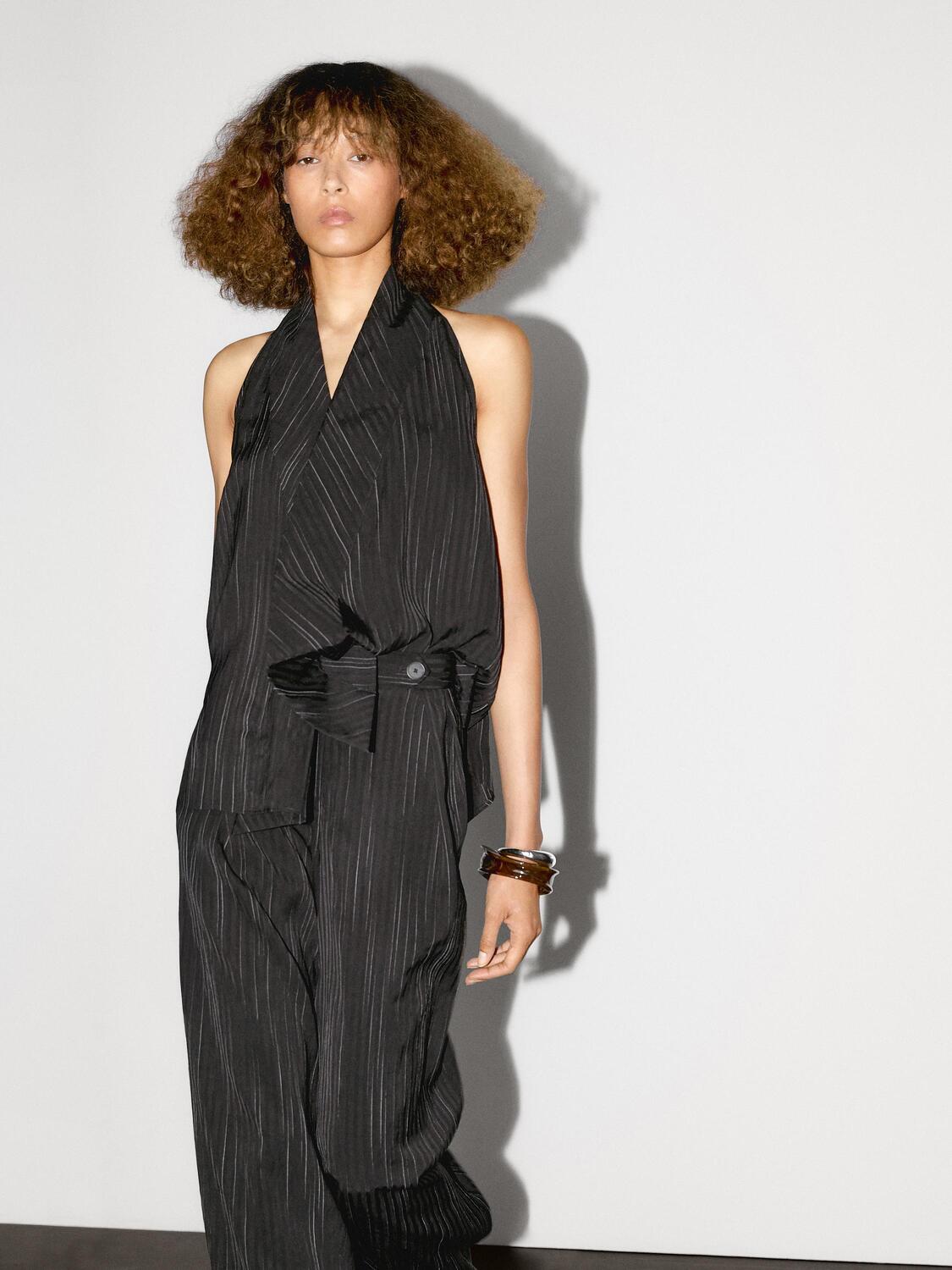 Брюки с защипами и полосатым принтом Massimo Dutti, черный 8 107₽