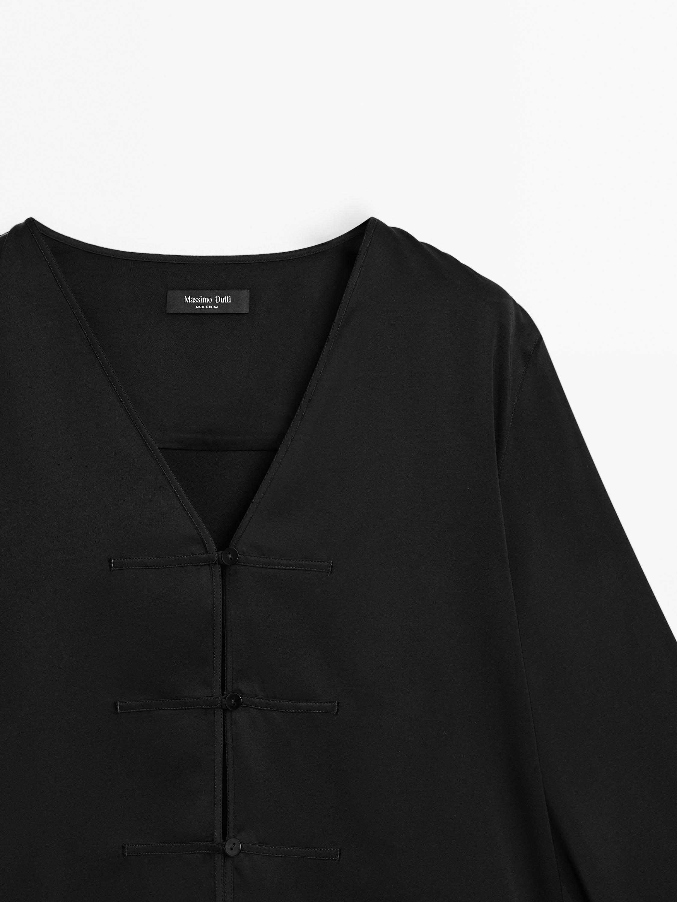 Атласная блузка с пуговицами Massimo Dutti, черный