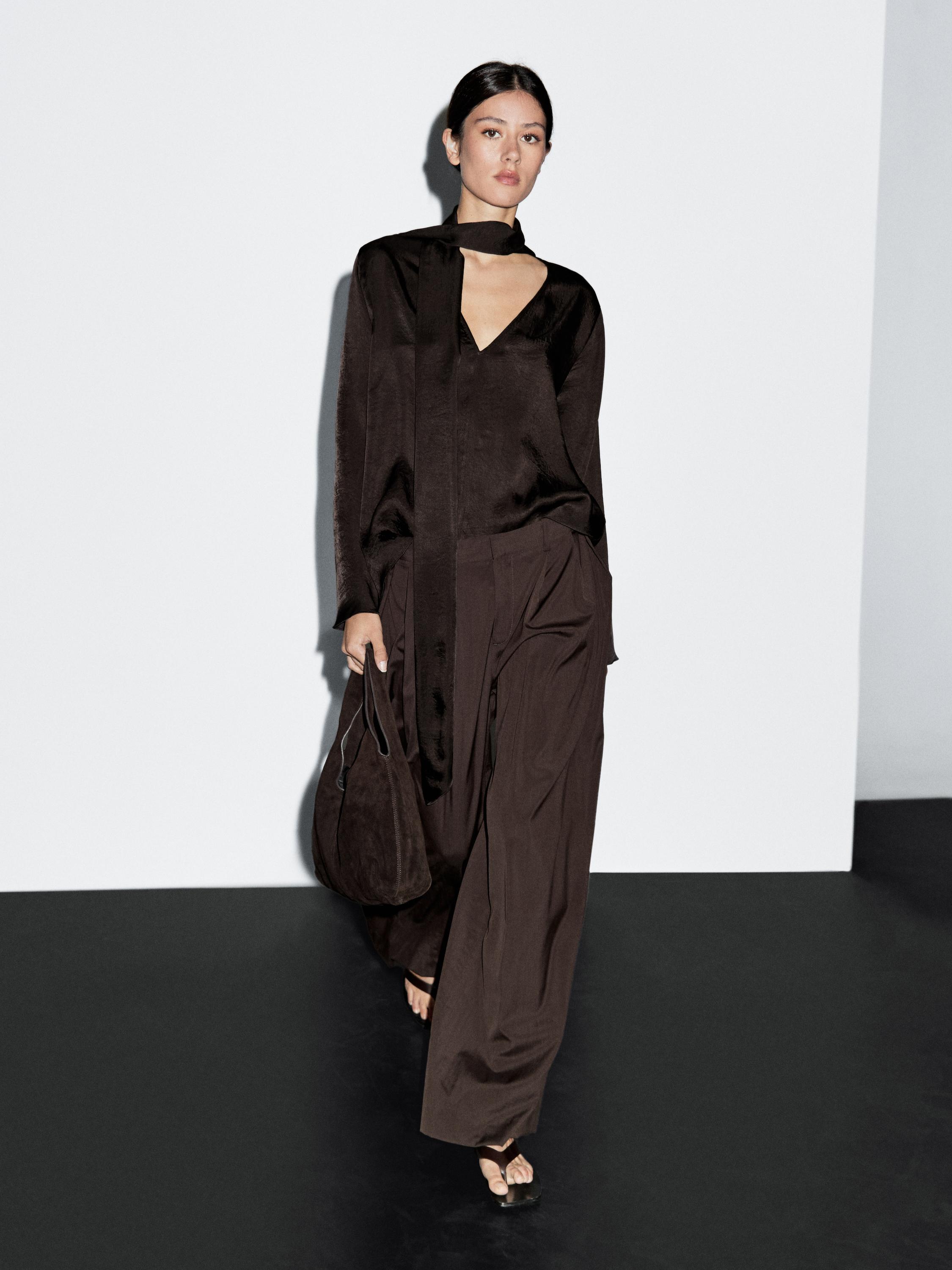 Струящаяся блузка с галстуком Massimo Dutti, коричневый 6 331₽