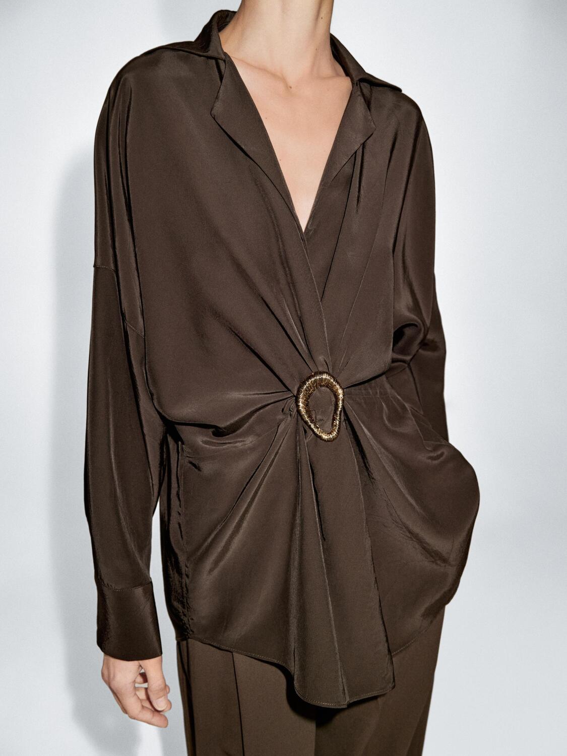 Длинная рубашка с брошью Massimo Dutti, коричневый 5 863₽