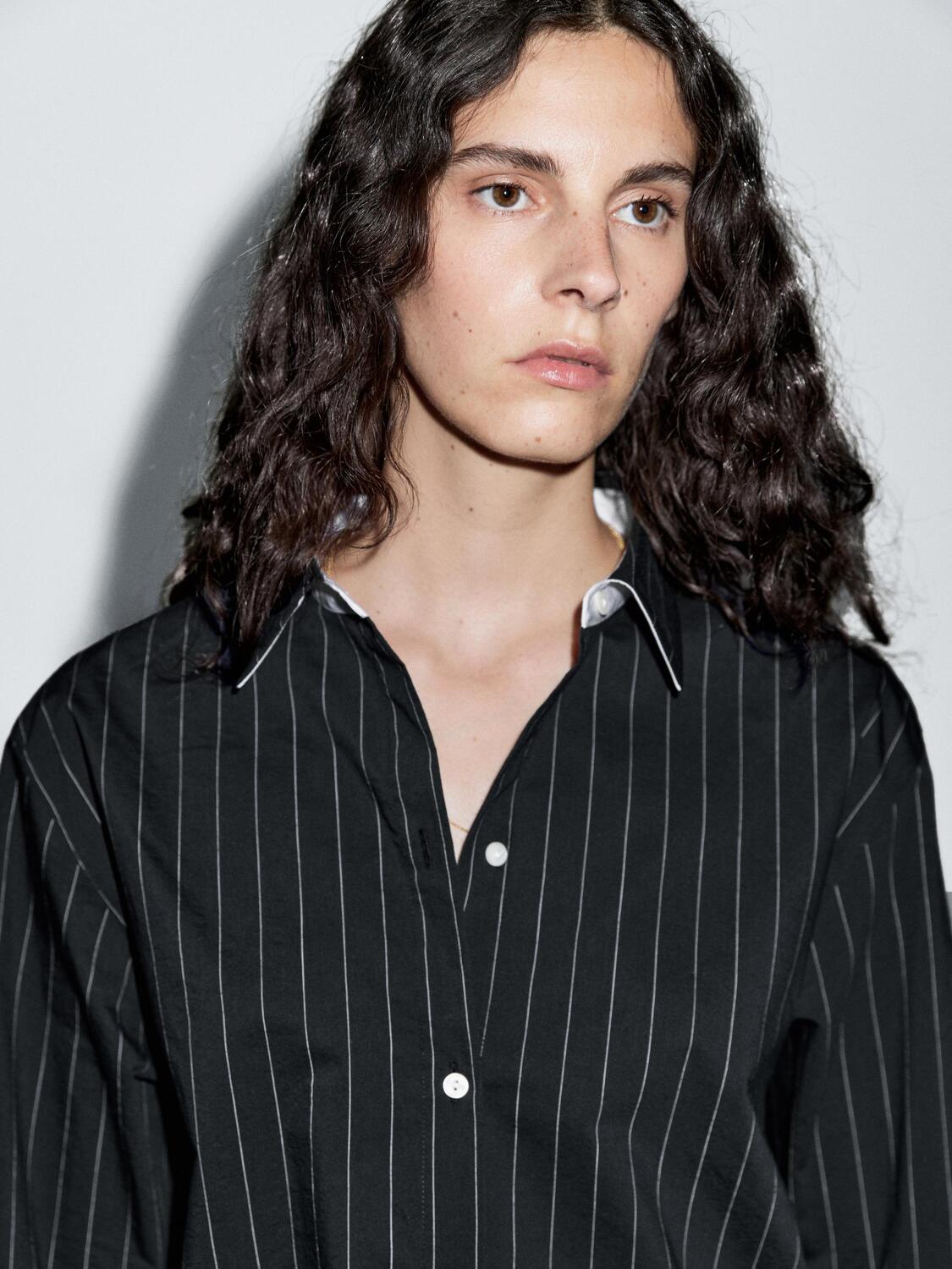 Полосатая рубашка с контрастной деталью Massimo Dutti, темно-синий 6 205₽