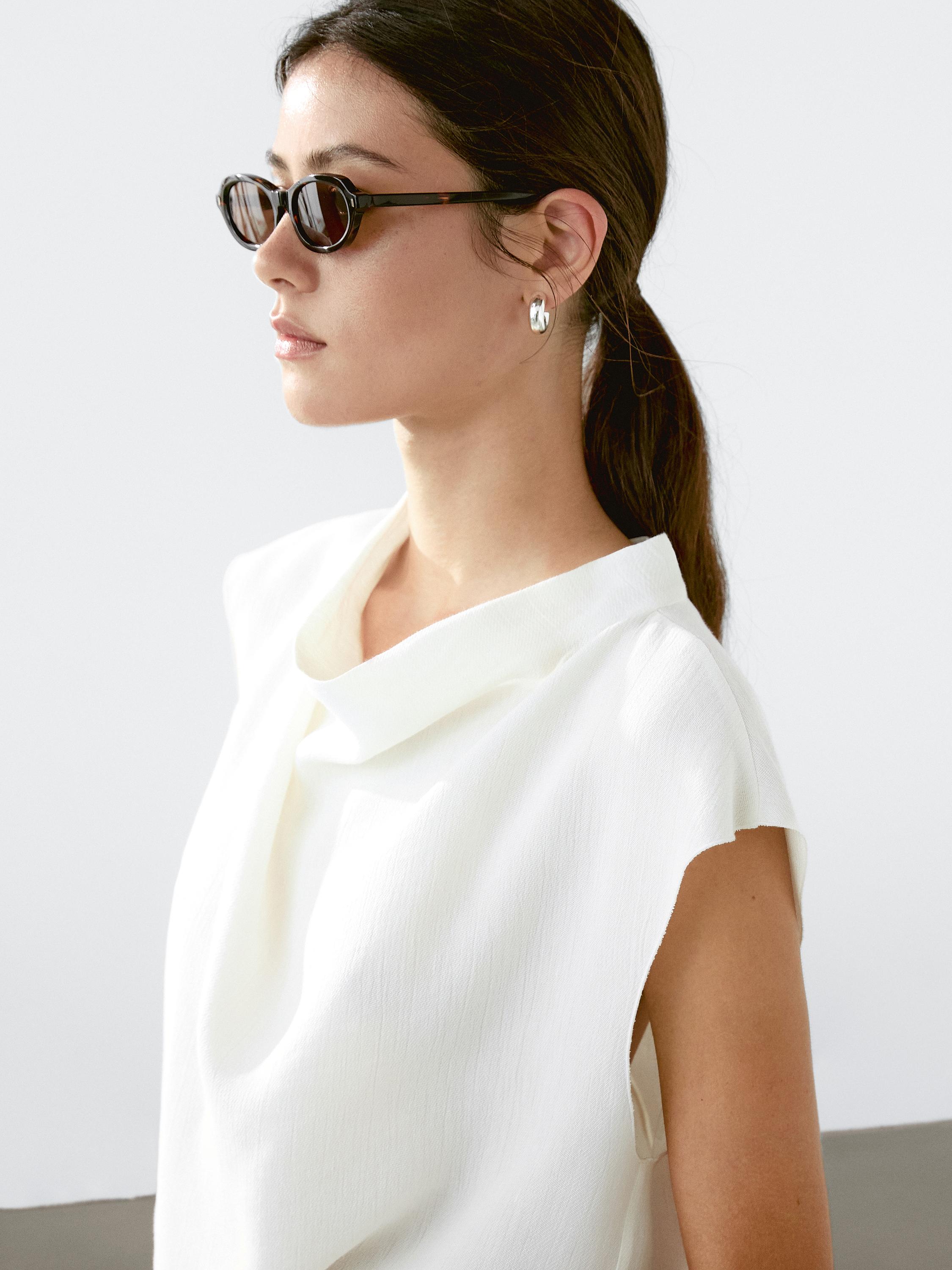 Струящаяся блузка с драпированным воротником Massimo Dutti, белый