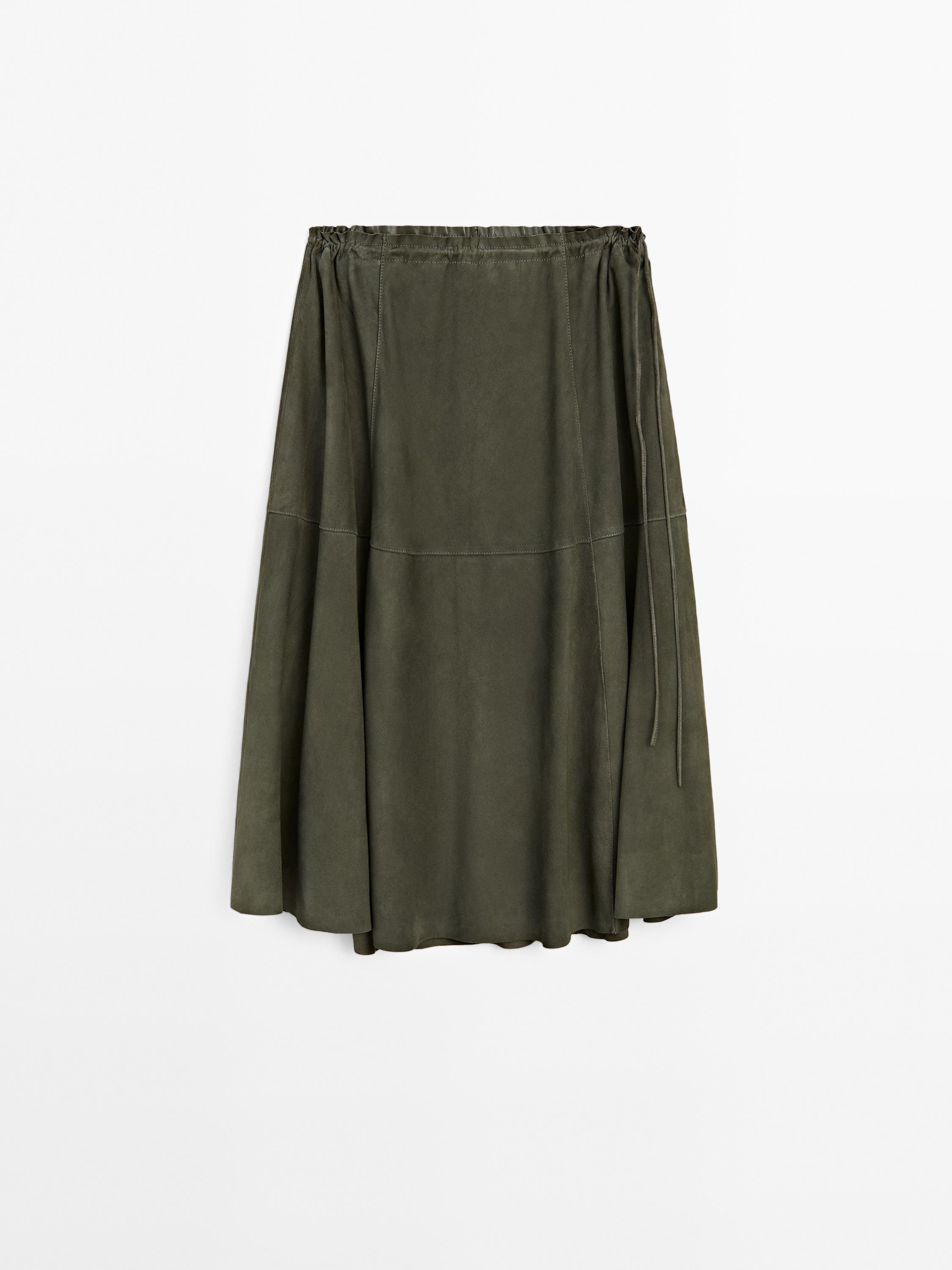 Юбка из замши со сборками Massimo Dutti, хаки