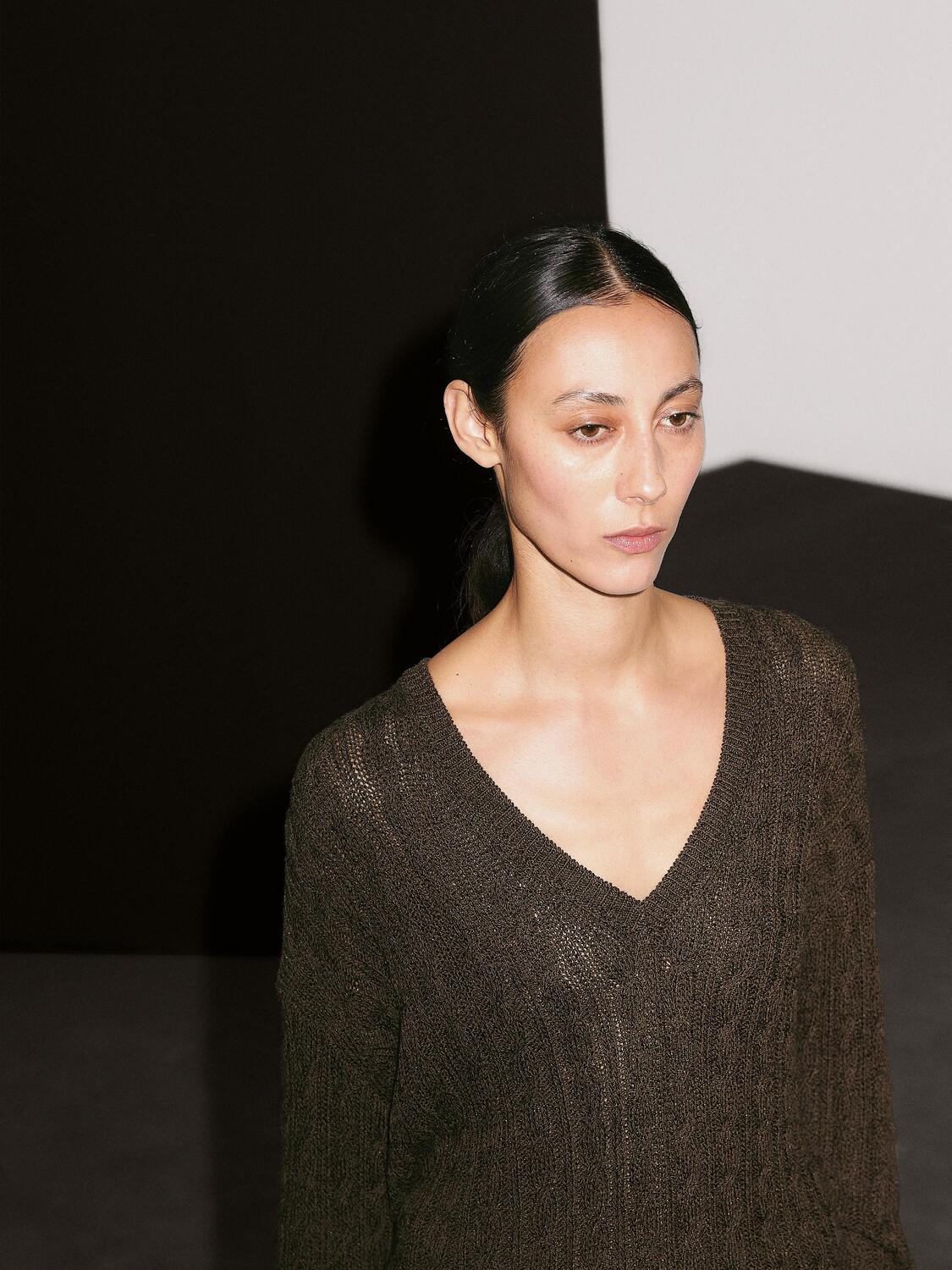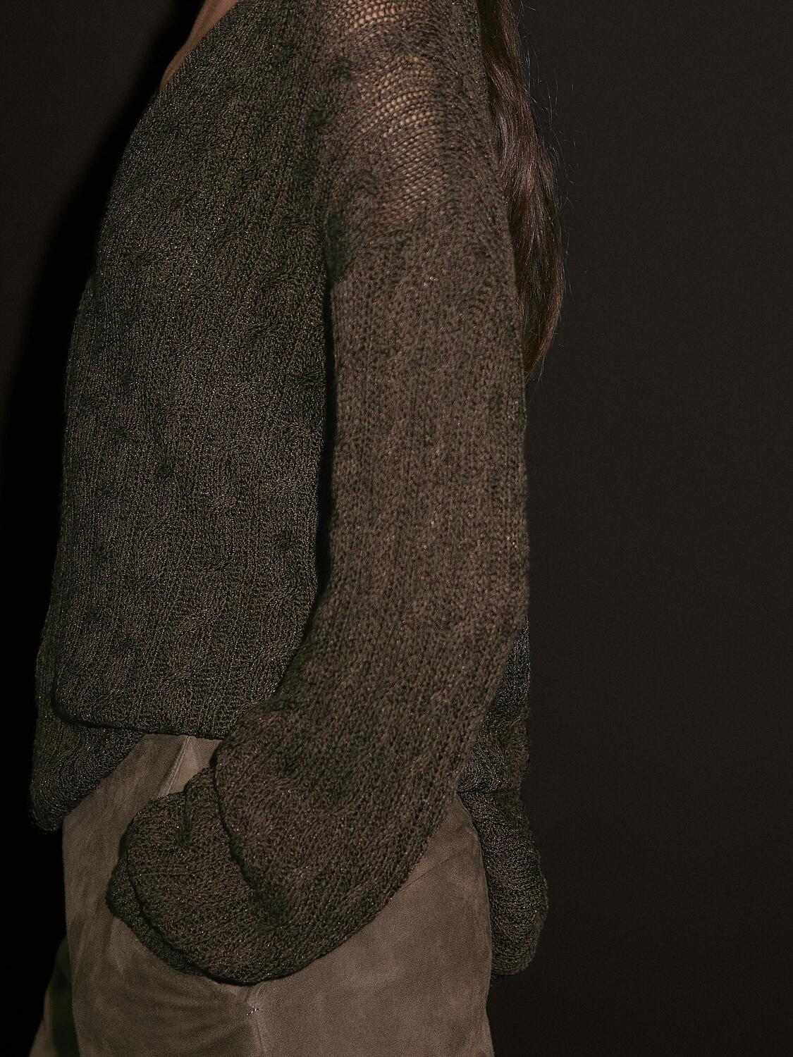 Свитер косой вязки с V-образным вырезом Massimo Dutti, Greenish