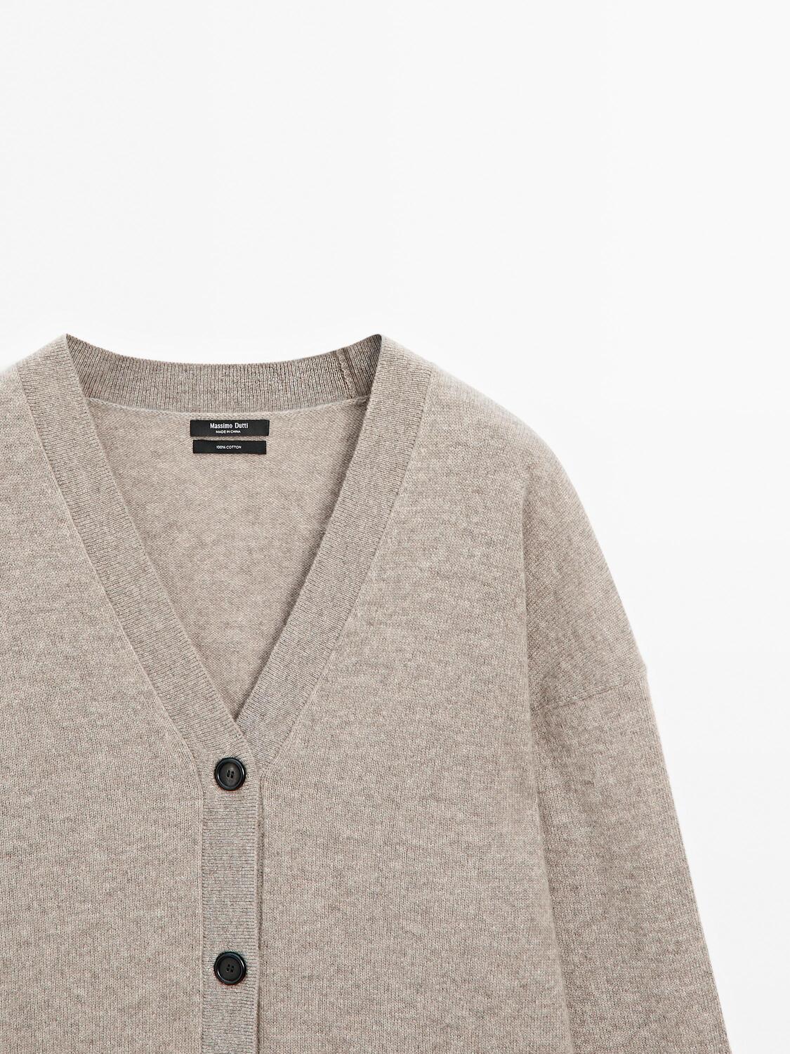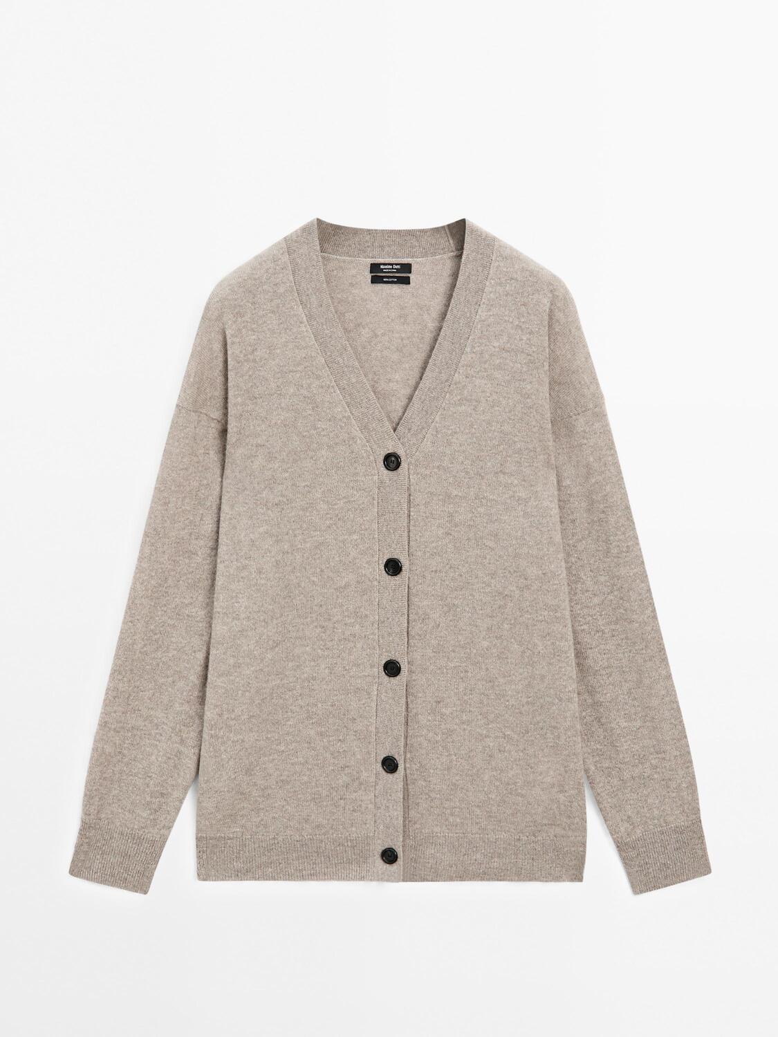 Кардиган oversize с V-образным вырезом из 100% кашемира Massimo Dutti, Mole Brown