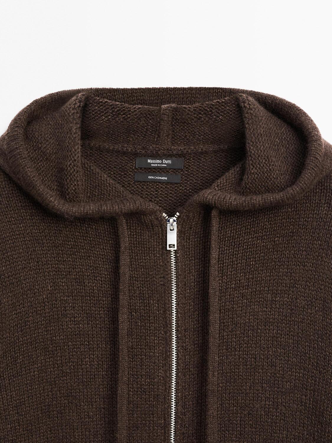 Кардиган из 100% кашемира с капюшоном Massimo Dutti, коричневый