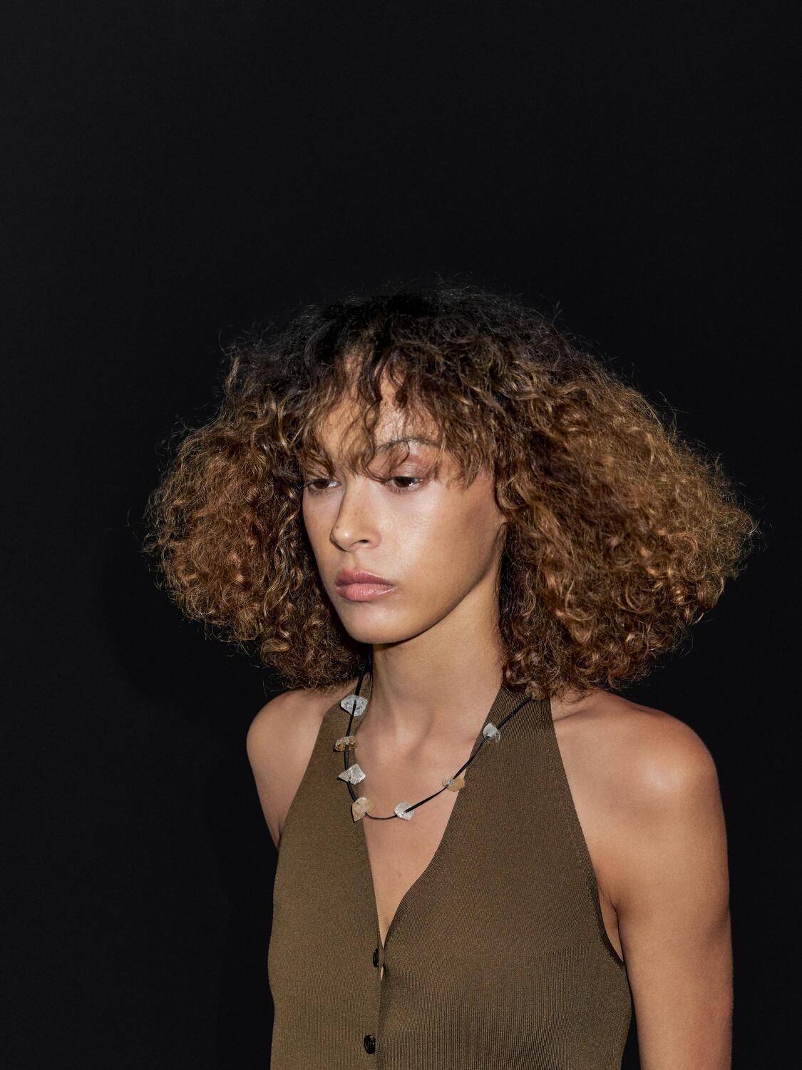 Вязаный жилет с халтер-воротом Massimo Dutti, хаки 3 725₽