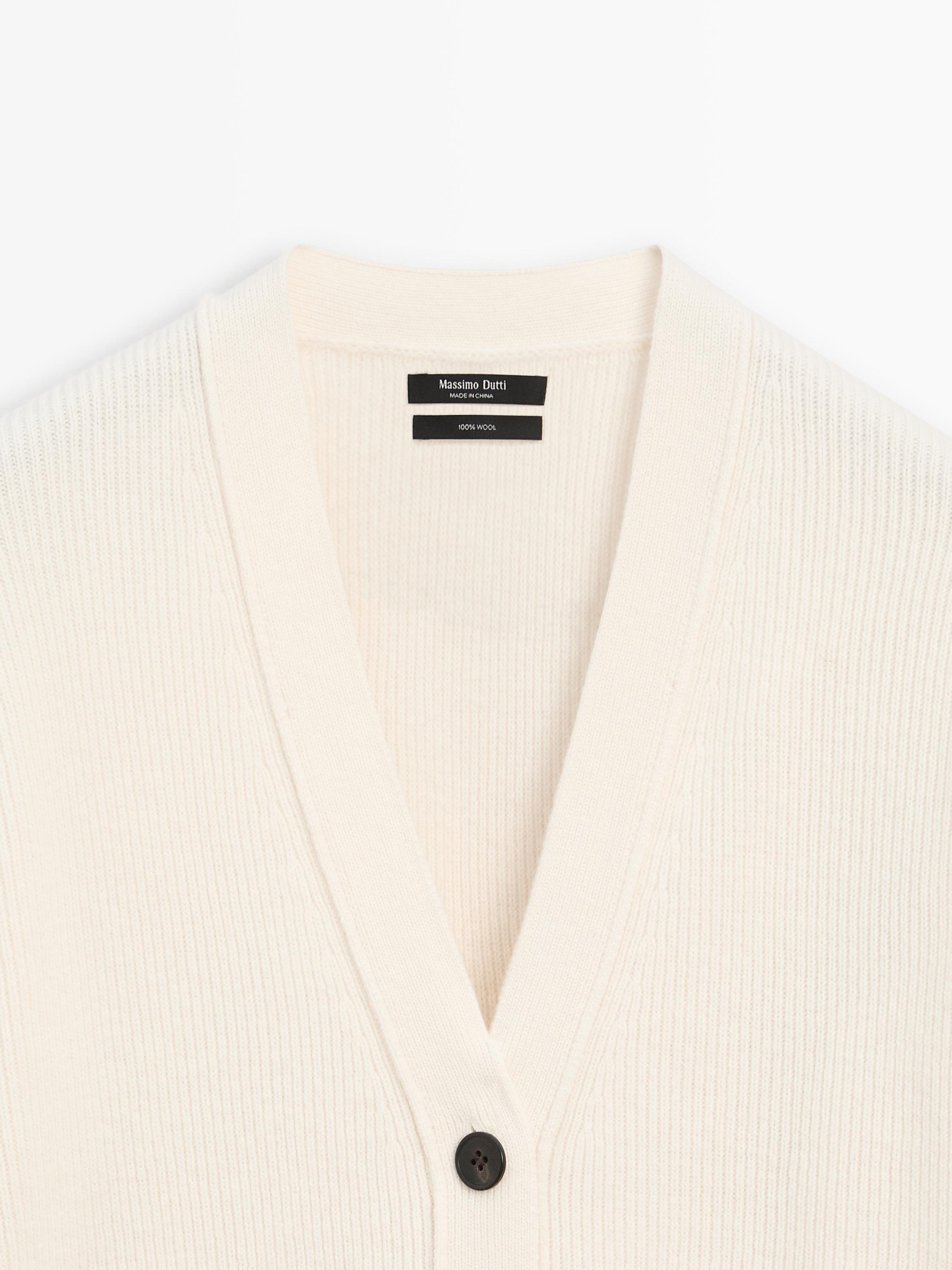 Кардиган из 100% шерсти с карманами Massimo Dutti, кремовый
