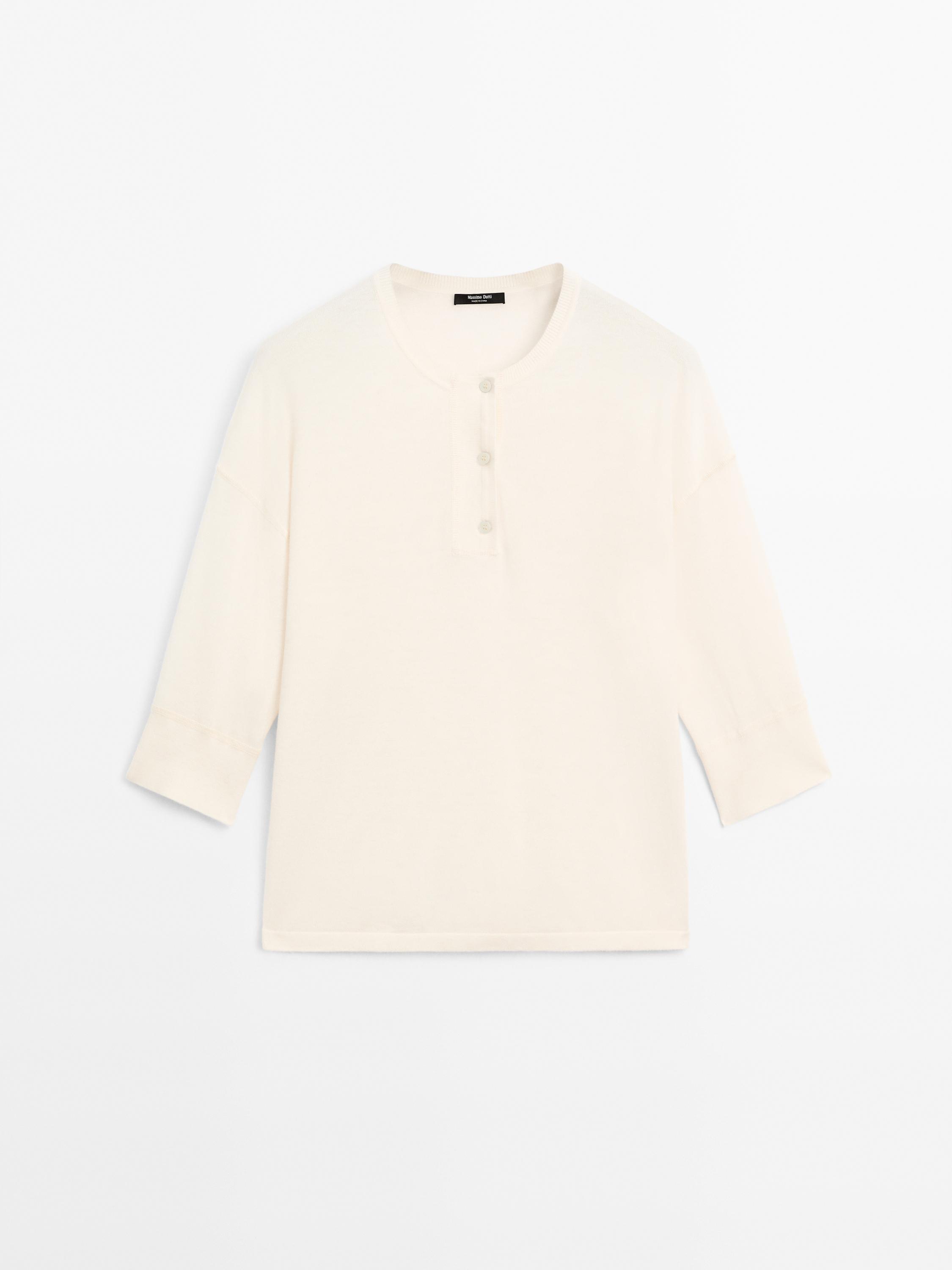 Свитер хенли из смесовой шерсти Massimo Dutti, кремовый