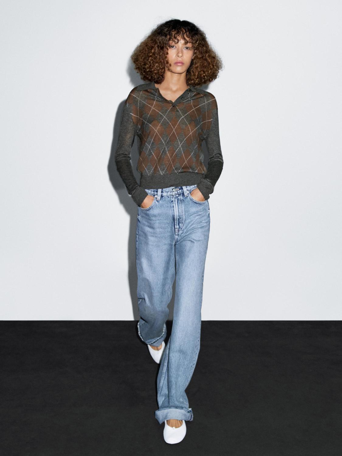 Свитер-Поло с ромбовидной отделкой Massimo Dutti, Medium Grey 8 390₽